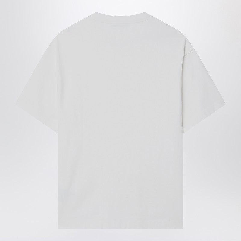 White cotton crew-neck T-shirt from Acne Studios featuring short sleeves, contrasting front lettering logo print and relaxed unisex fit.