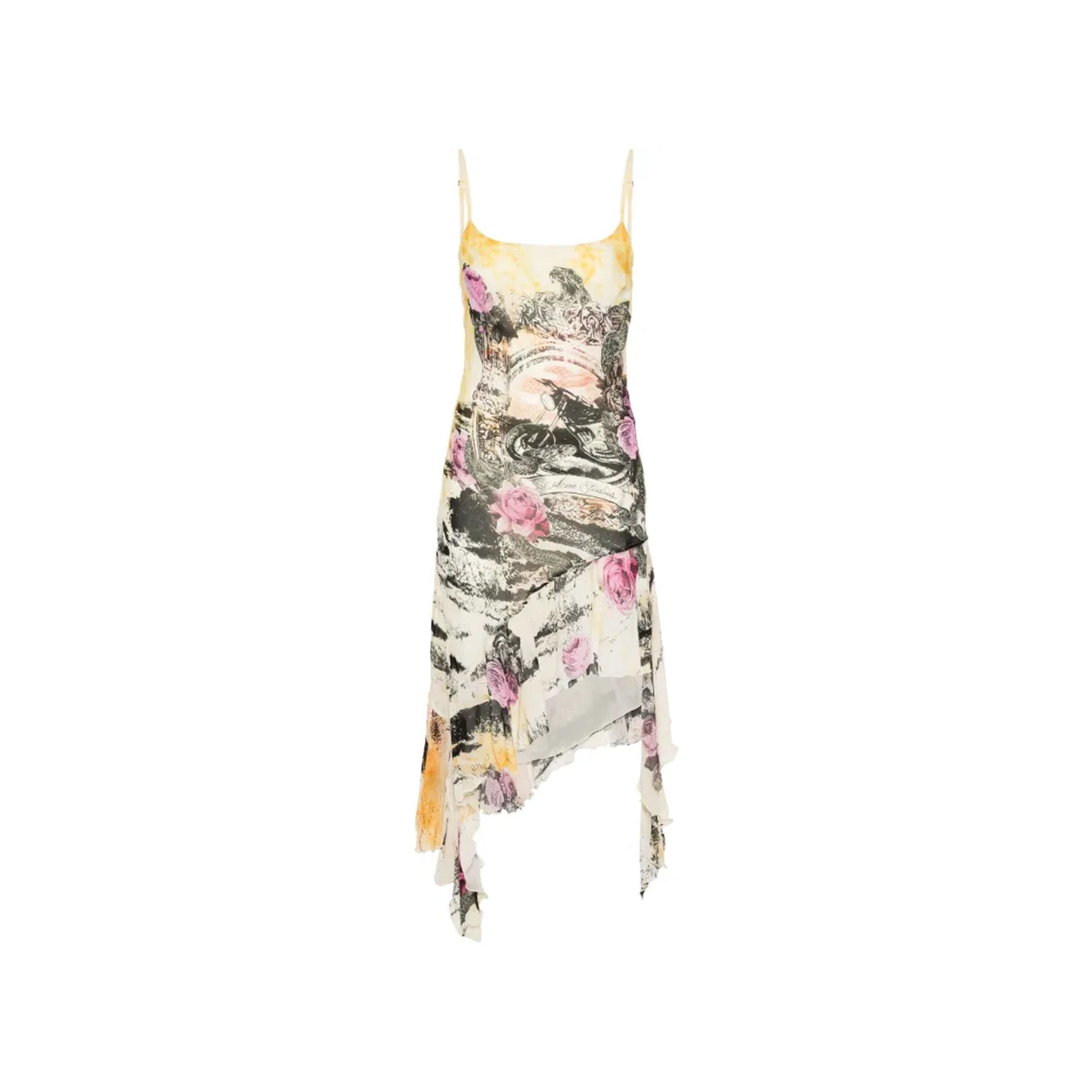 Composition: 100% Viscose Sleeveless Square neck Seasonal animation print Asymmetric shoulder straps Cutout back Asymmetric ruffled hem Made in Italy