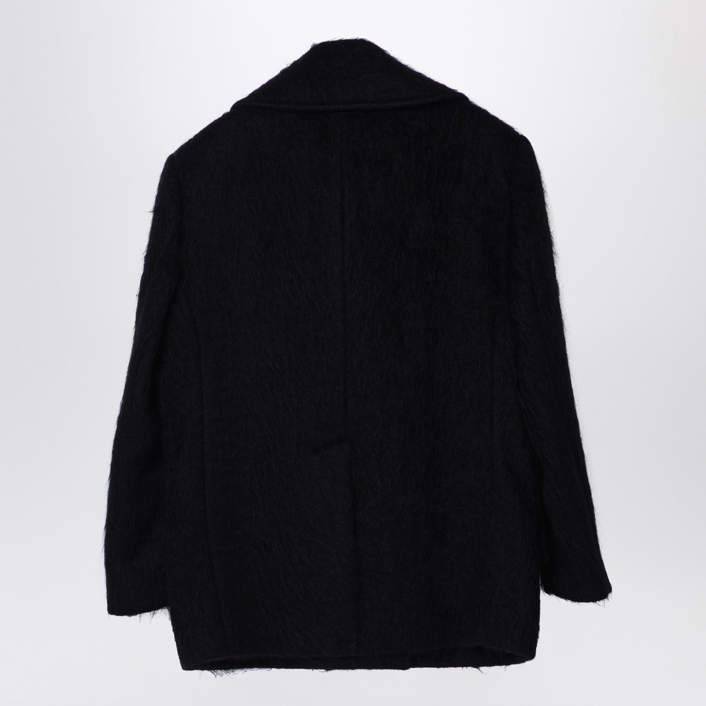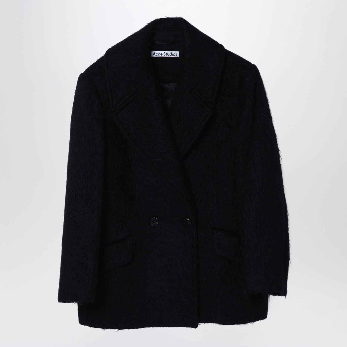 Black wool blend double-breasted short coat from Acne Studios featuring long sleeves, classic wide lapels, a front button placket, two flap pockets on the front and a back vent.