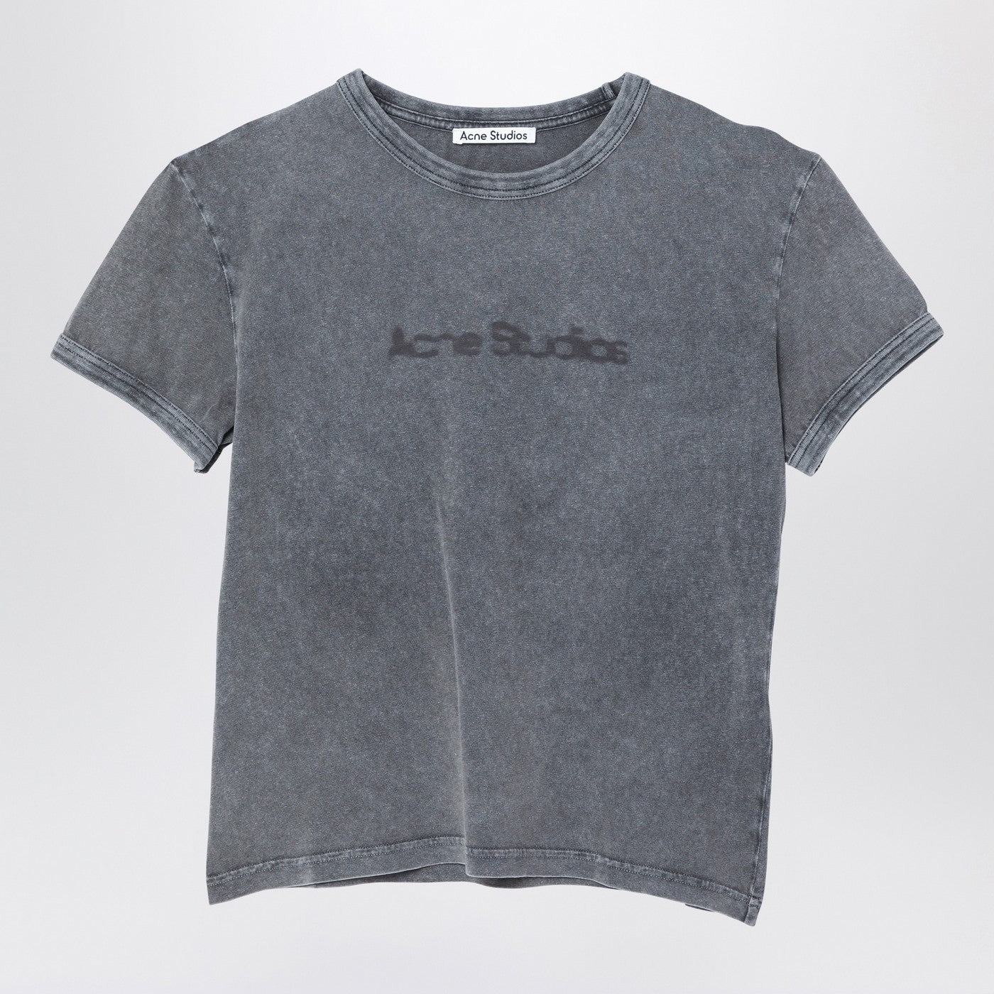 Washed grey cotton crew-neck T-shirt from Acne Studios featuring short sleeves, faded lettering logo on the front and a straight hem.
