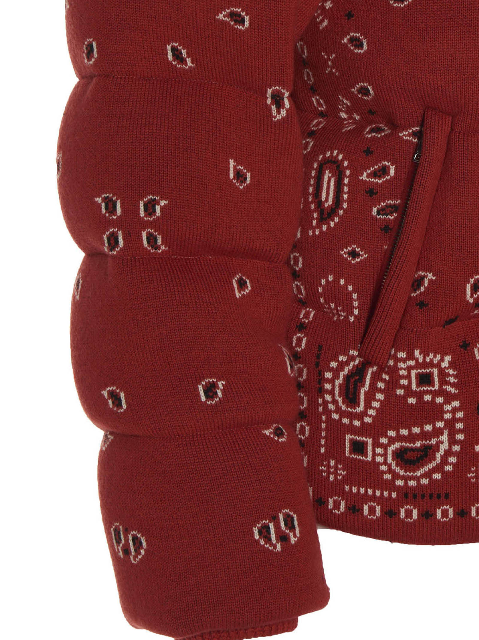 Down filled wool jacket, featuring an all-over 'Bandana' print, a zip fastening, a high collar, long sleeves, and pockets.