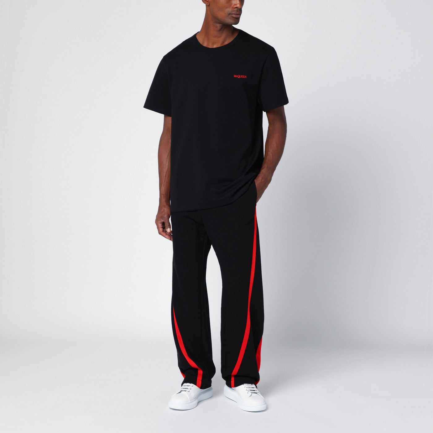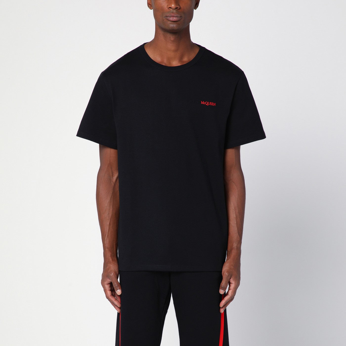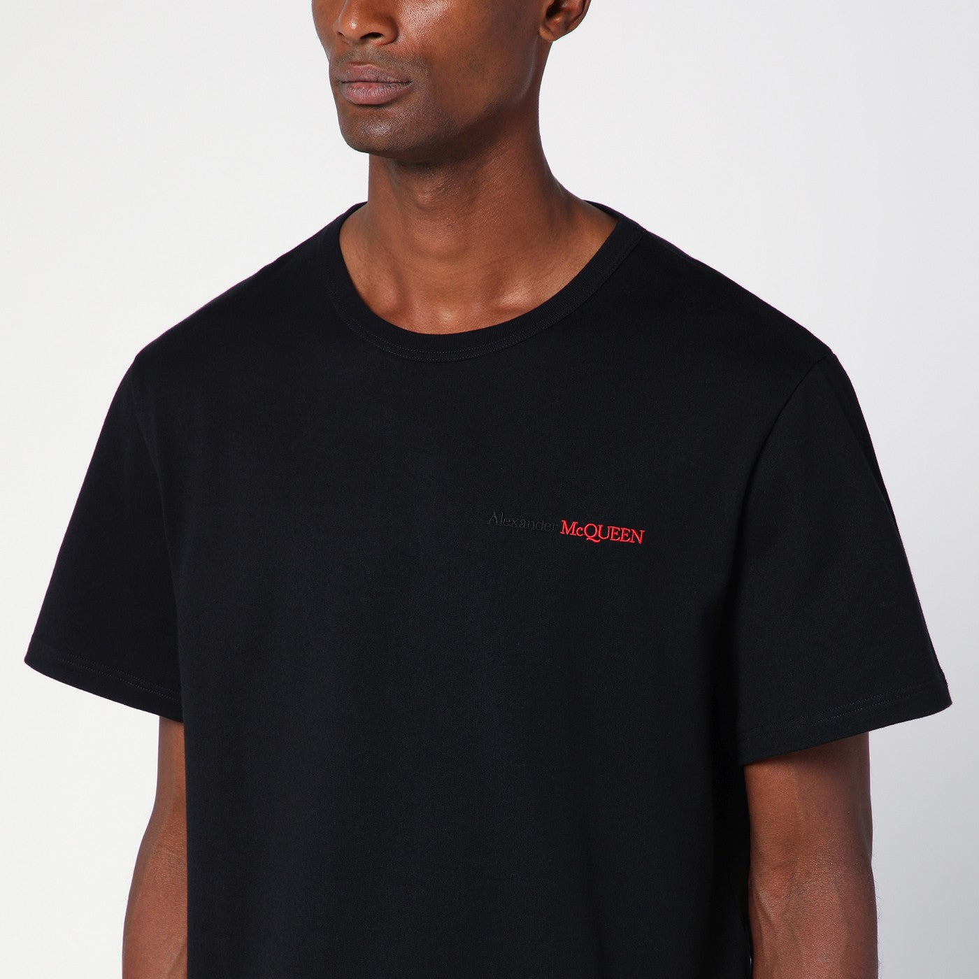 Black cotton crewneck T-shirt from Alexander McQueen featuring a contrasting lettering logo on the chest, short sleeves and a straight hem.