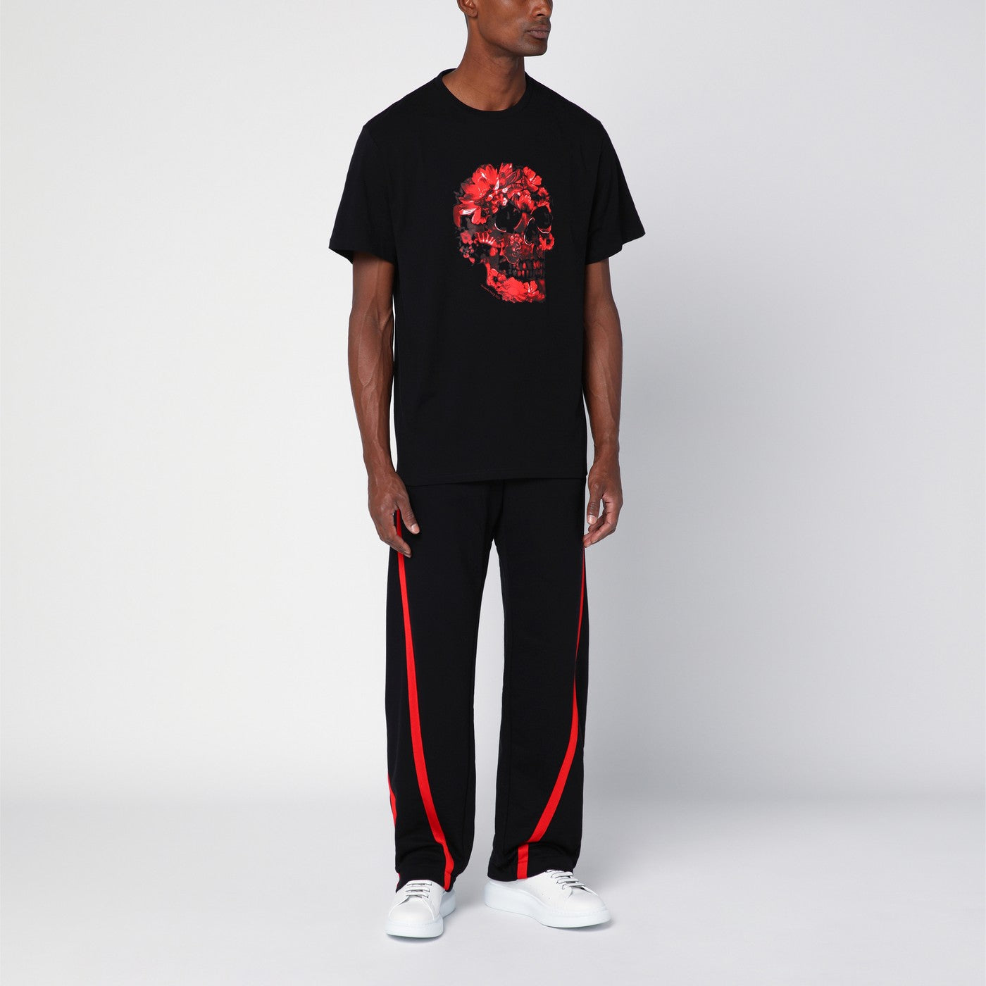 Black cotton crewneck T-shirt from Alexander McQueen featuring a front print with contrasting logo lettering, short sleeves and a straight hem.