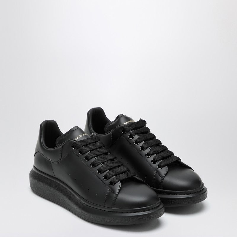 Oversize sneakers by Alexander McQueen in black smooth calf leather feautring rounded toe, tone on tone leather heel detail, large flat laces and oversized rubber sole. The laces may differ from those in the product image.