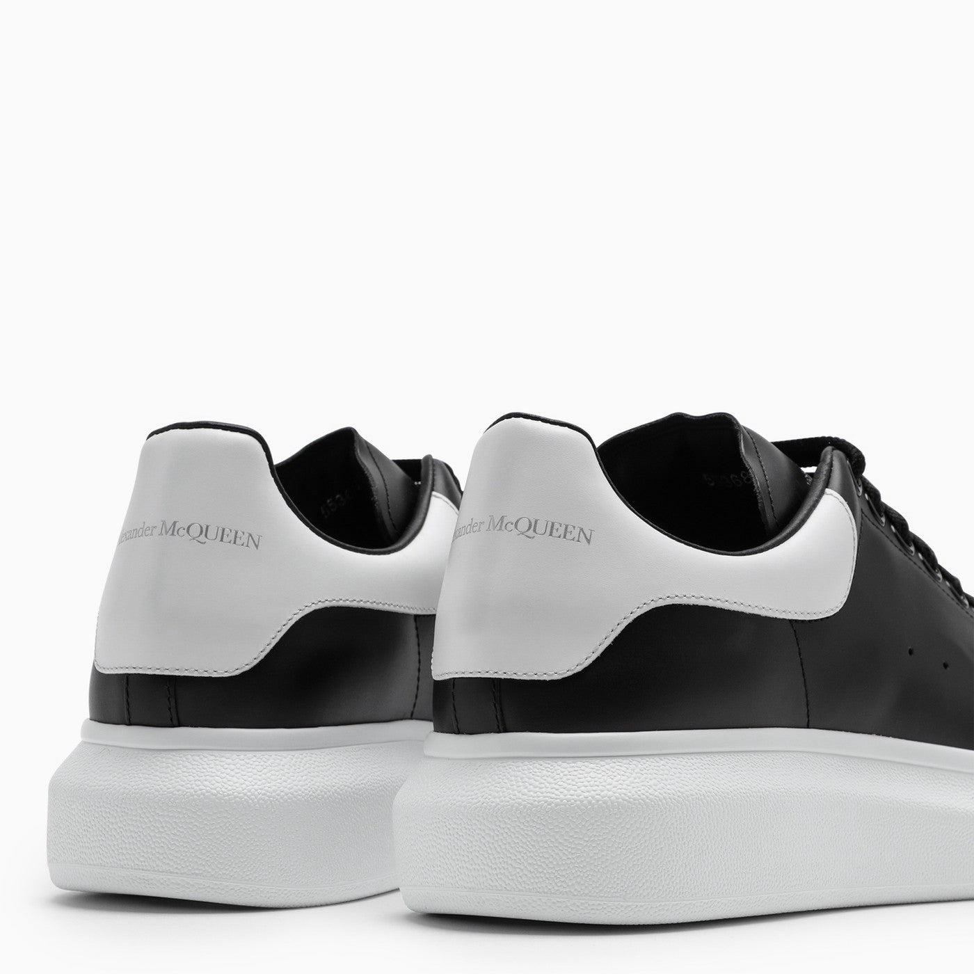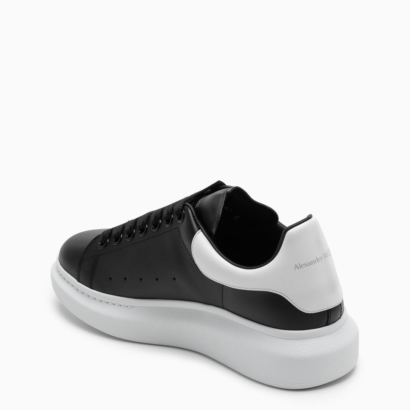 Sneakers by Alexander McQueen in black smooth calf leather upper featuring rounded toe, white leather heel detail, large flat laces and oversized rubber sole. The laces may differ from those in the product image.