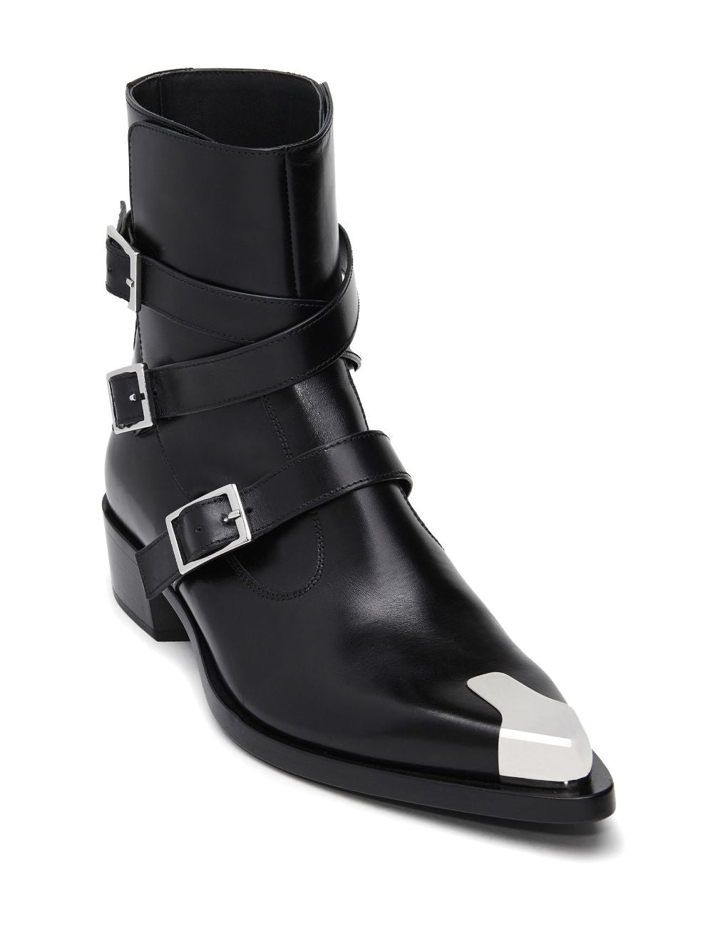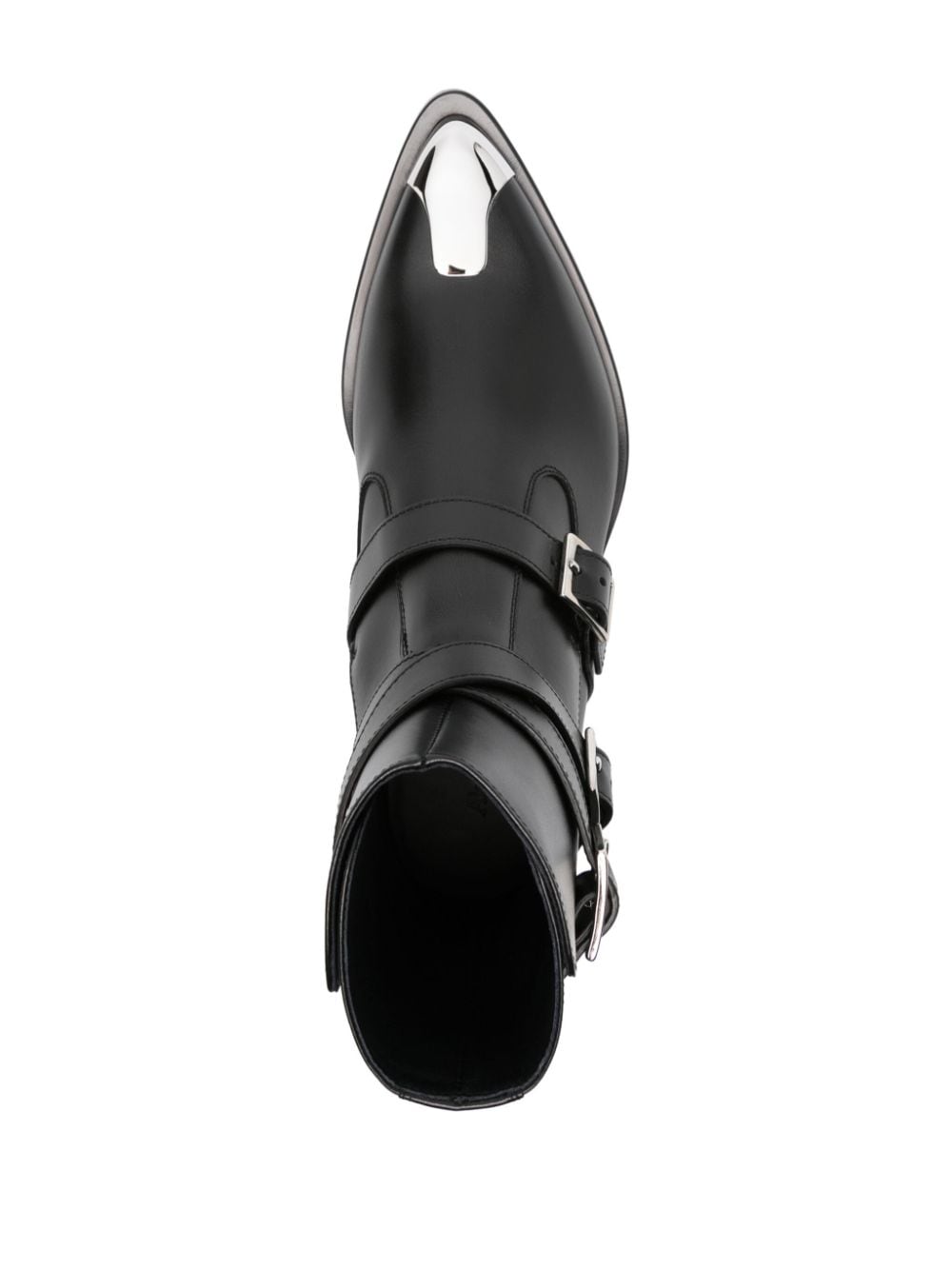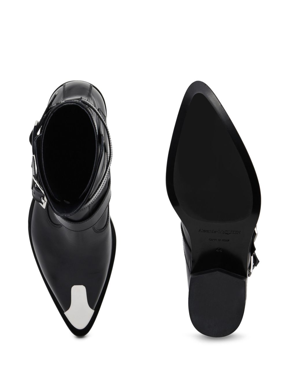 Punk Triple Strap 40mm boots from Alexander McQueen featuring black, silver-tone, leather, silver-tone hardware, pointed toe, buckle fastening and Cuban heel.