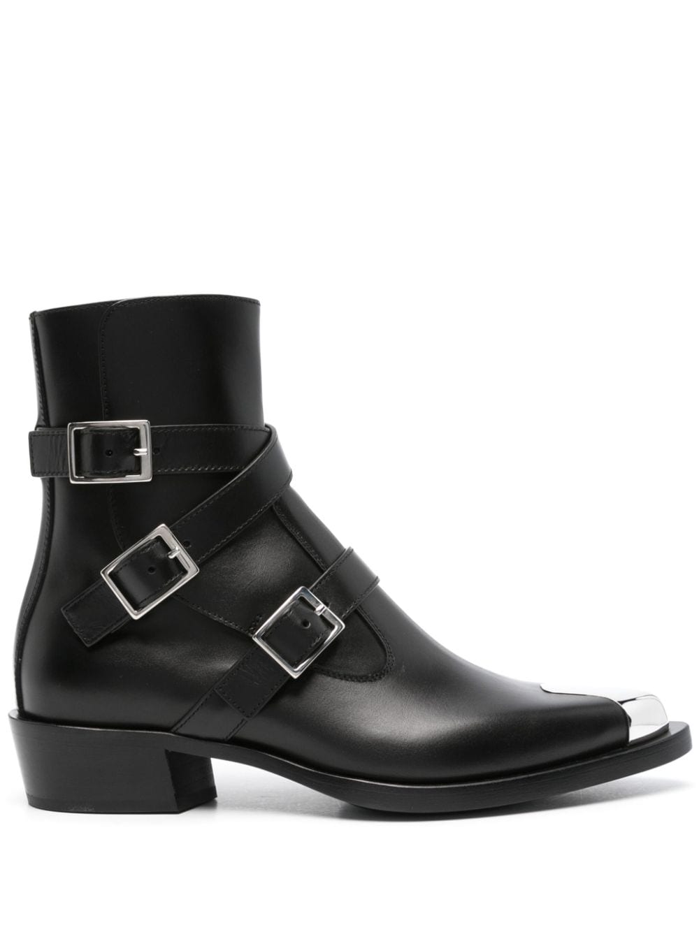 Alexander Mc Queen Buckled Leather Ankle Boots