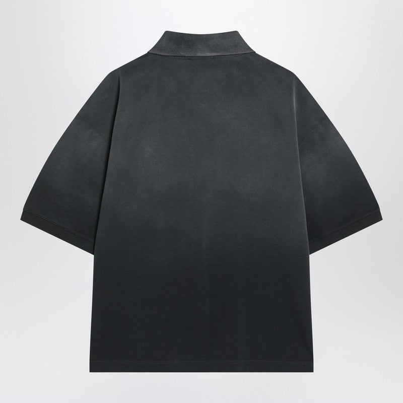 Alexander Mc Queen Faded Effect Black Polo Shirt In Cotton