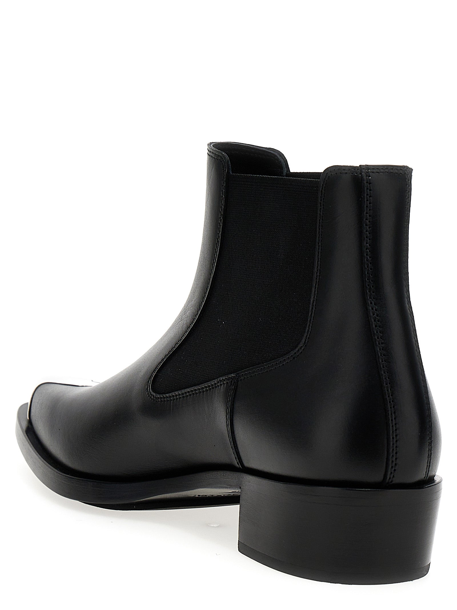 'Punk' leather Chelsea boots featuring silver metal toe cap, ankle elastics and a low heel.
