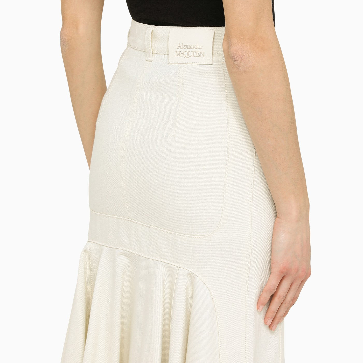 Alexander Mc Queen Ivory Denim Pencil Skirt