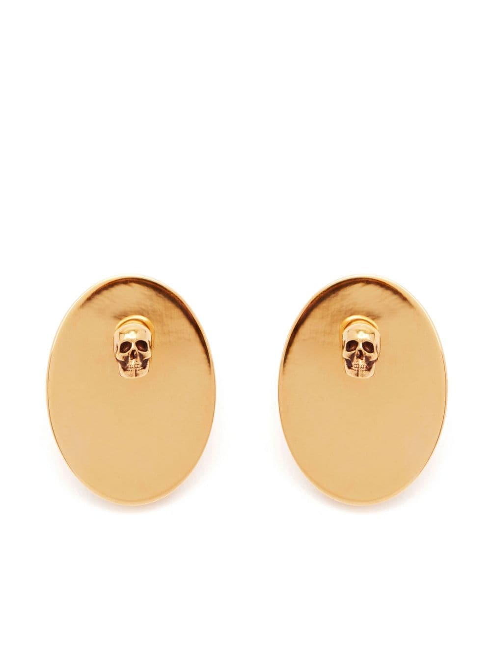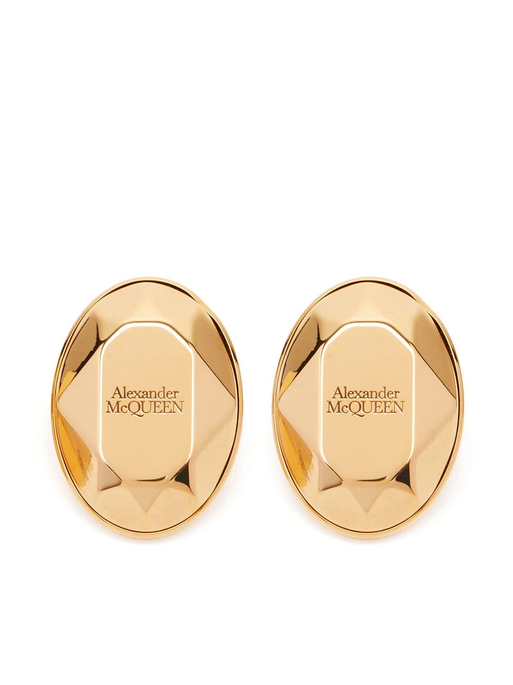 The Faceted Stone Stud Earrings from Alexander McQueen featuring gold-tone, brass, polished finish, skull appliqué, engraved logo and for pierced ears. These earrings come as a pair..