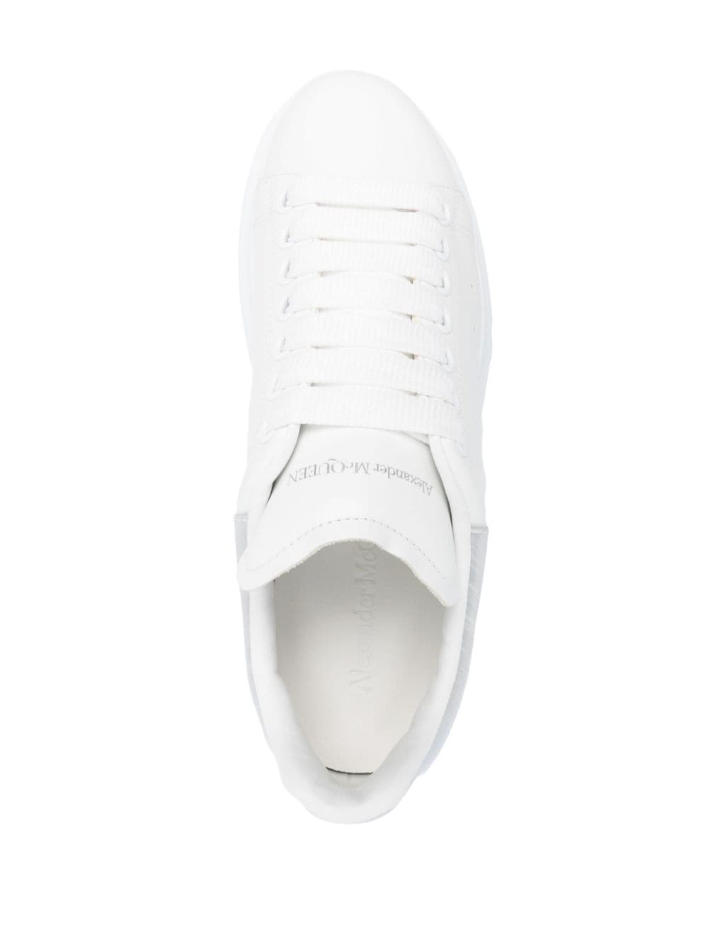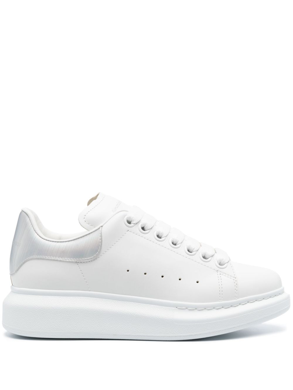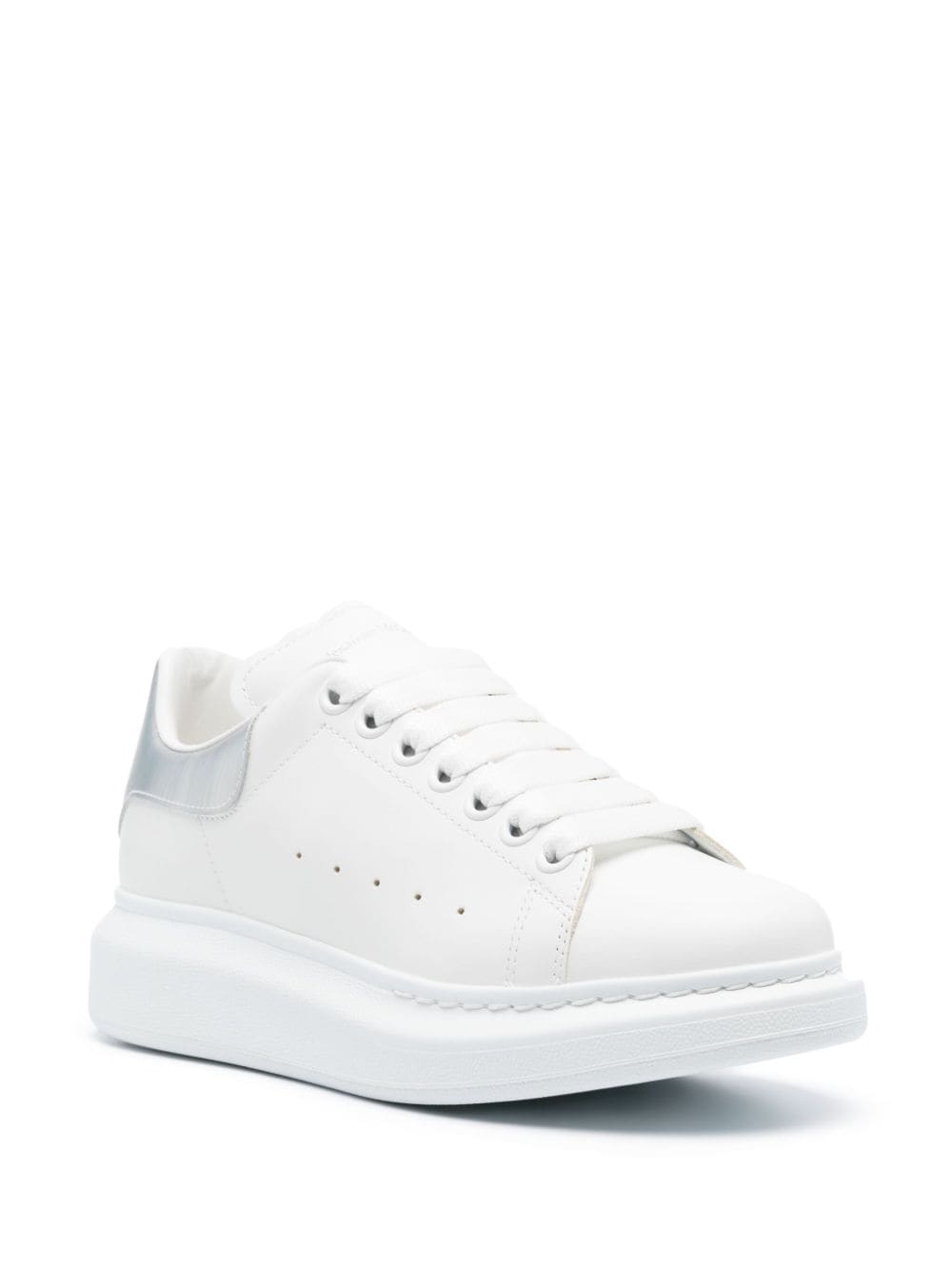 white/silver-tone calf leather smooth grain perforated detailing to the sides iridescent effect to the rear logo-print tongue logo print to the rear logo at the sole round toe front lace-up fastening branded leather insole flat rubber sole