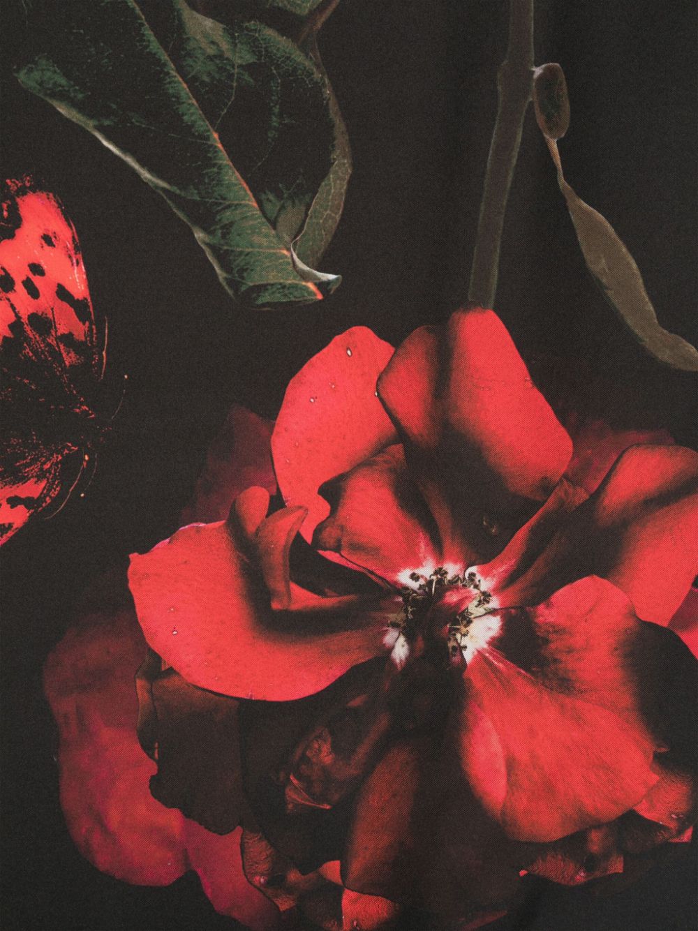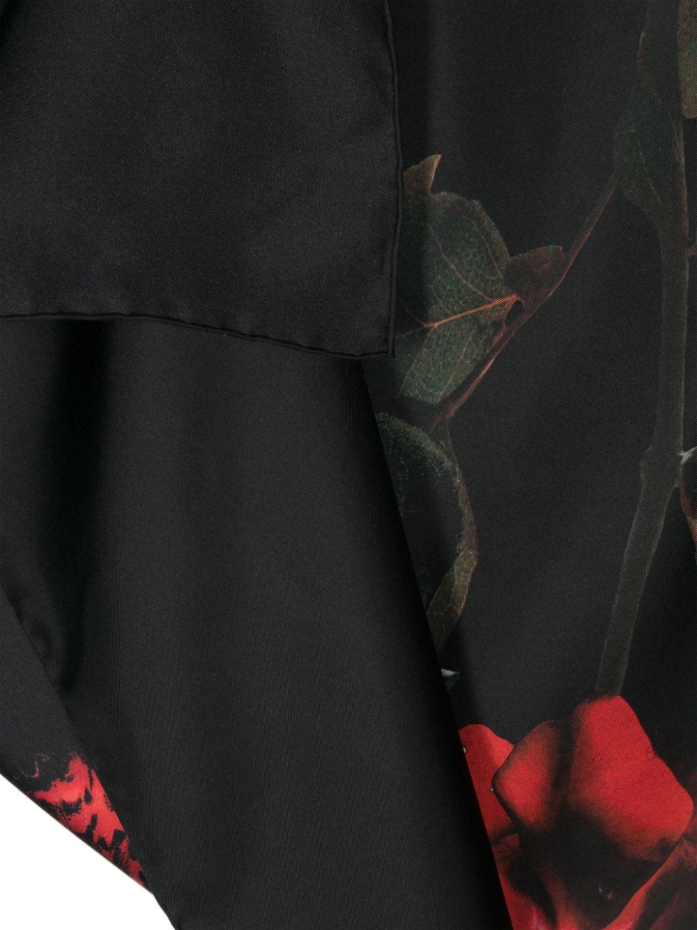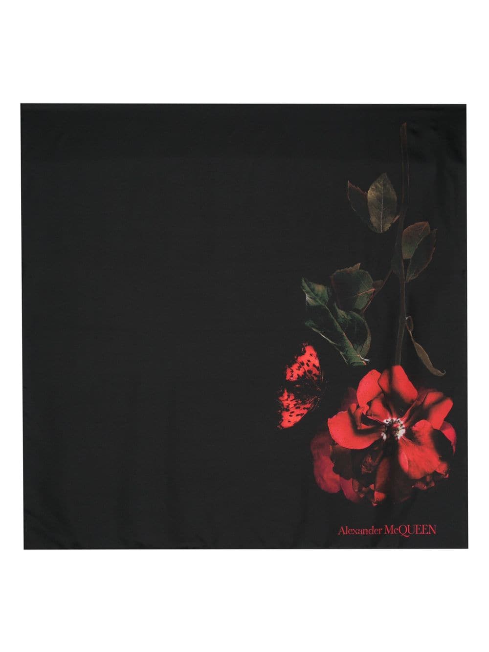 black silk rose print butterfly print logo print embellishment square shape finished edge wraparound style