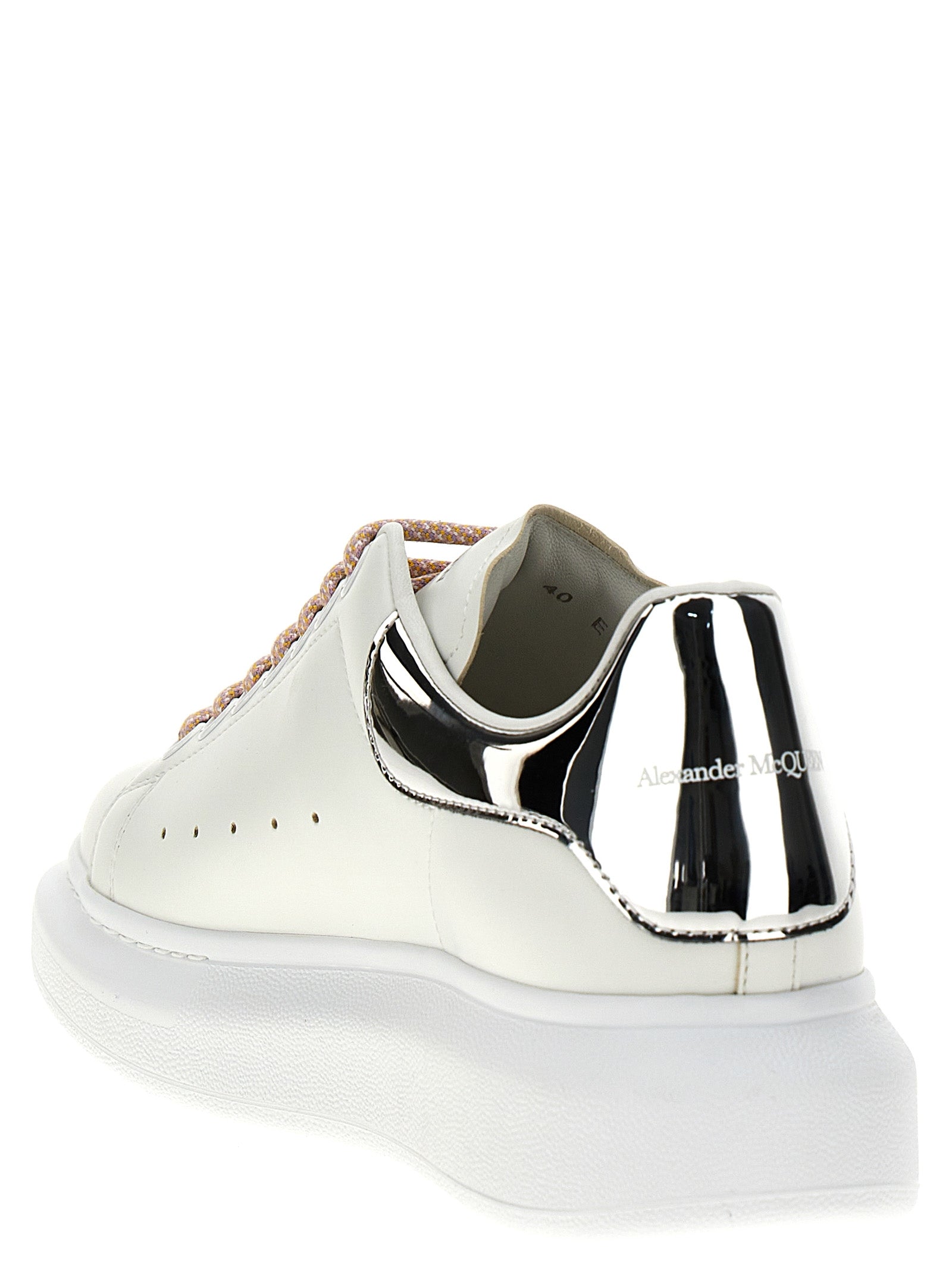 'Oversize' leather sneakers, contrasting heel, lace-up closure, rubber sole.