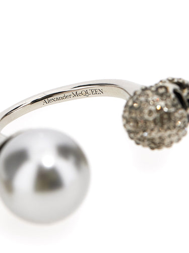 Alexander Mcqueen Pearl Skull Double Ring