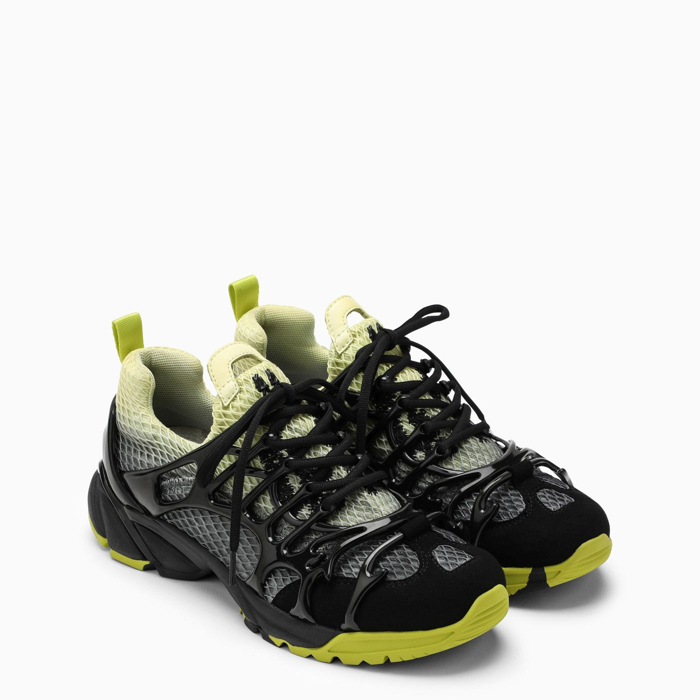 Sneaker of 44 Label Group in black and lime gradient fabric, featuring mesh fabric upper, contrasting inserts, rounded toe, chisuura with strings, logo sewn on the back and rubber Vibram sole.