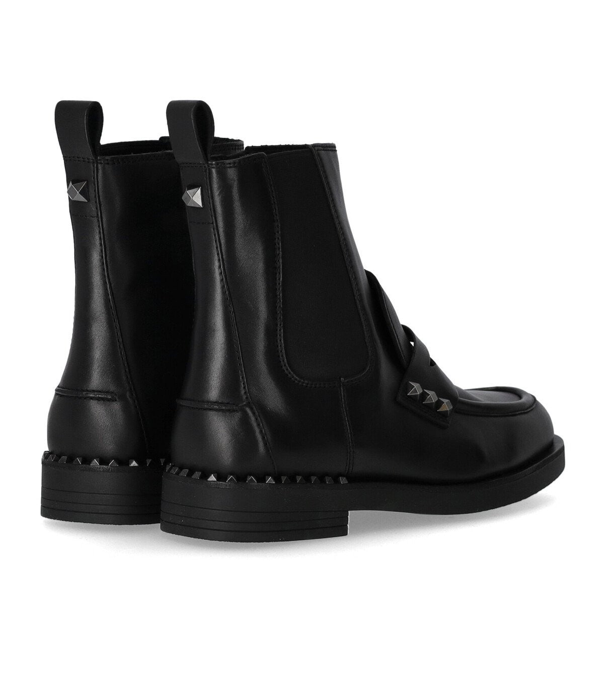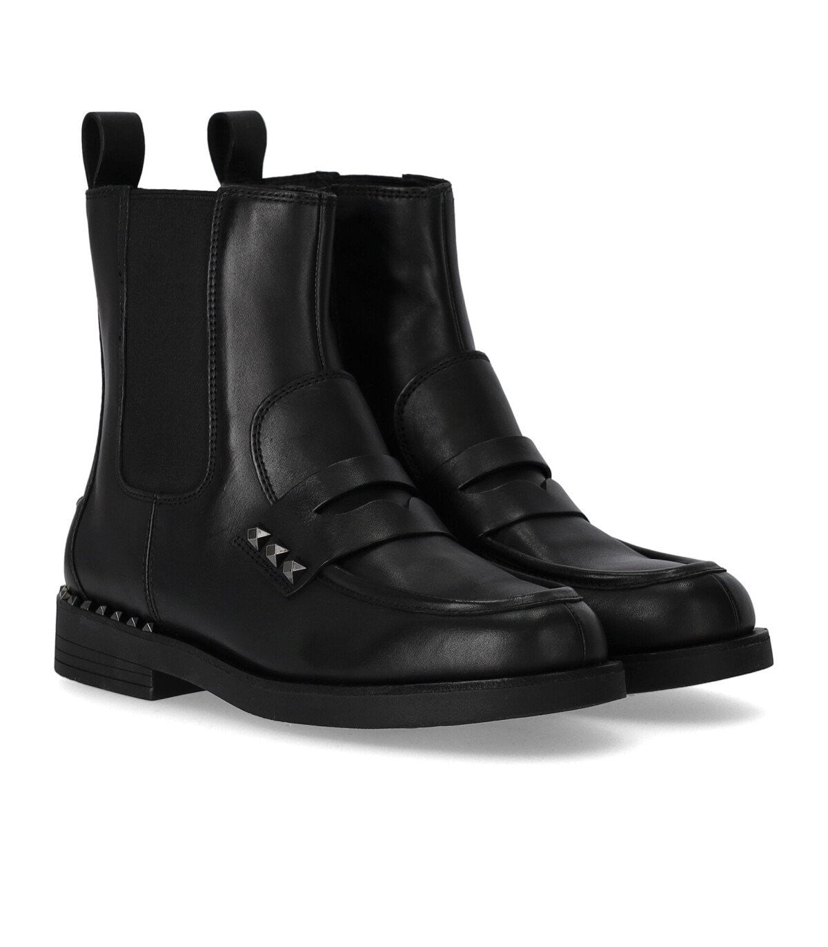 Ash Wings Studs chelsea ankle boot made of black leather, featuring an elastic insert on the outside and zip closure on the inside. Loafer-style mask on the front, matching metal studs, leather lining and insole. Rubber sole, height 3 cm.