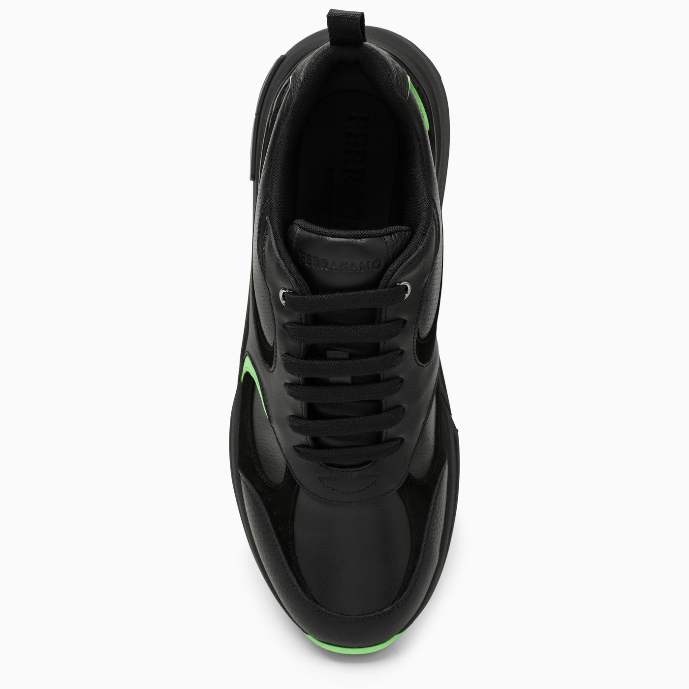 Fabric trainer by Ferragamo with a black upper with neon green details, a rounded toe, a lace-up closure and a rubber sole.