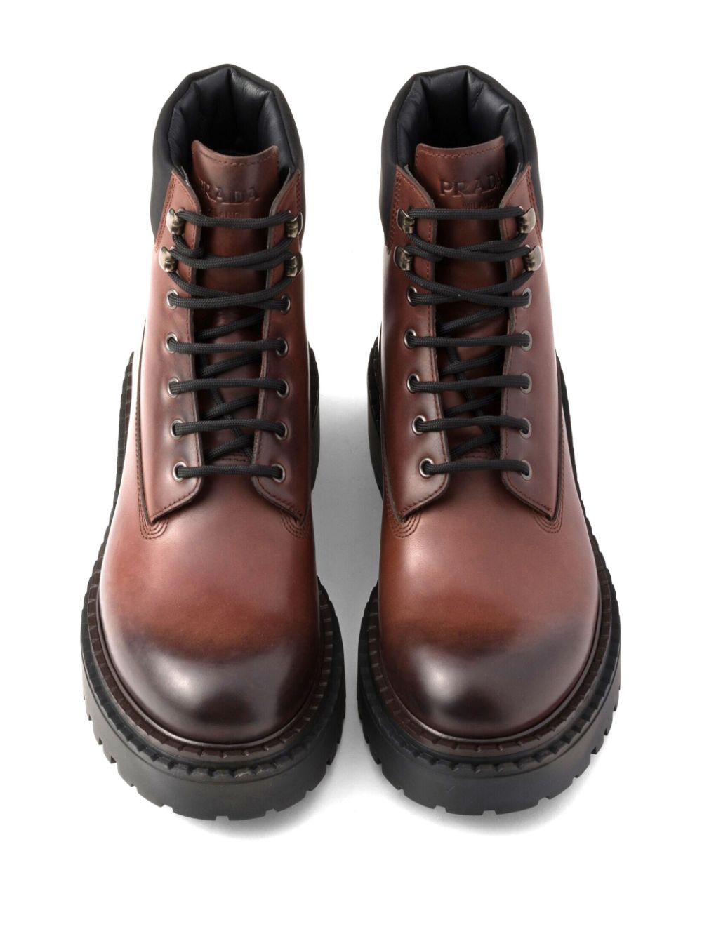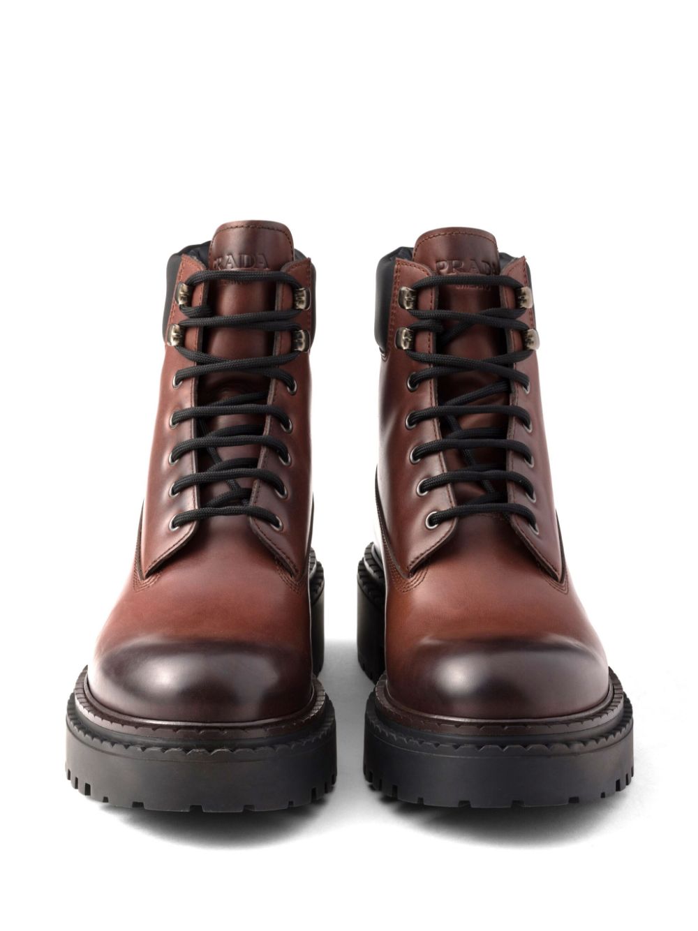 brown leather brushed finish front lace-up fastening padded ankle debossed logo to the rear debossed logo to the side logo-debossed tongue metal eyelet detailing round toe branded insole chunky rubber sole
