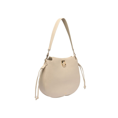 - Composition: 100% calf leather - Length 30 cm - Gold-tone hardware - Width 12 cm - One top handle - front logo detail - Rounded shape - Grained-effect - Height 35 cm - Made in United Kingdom -