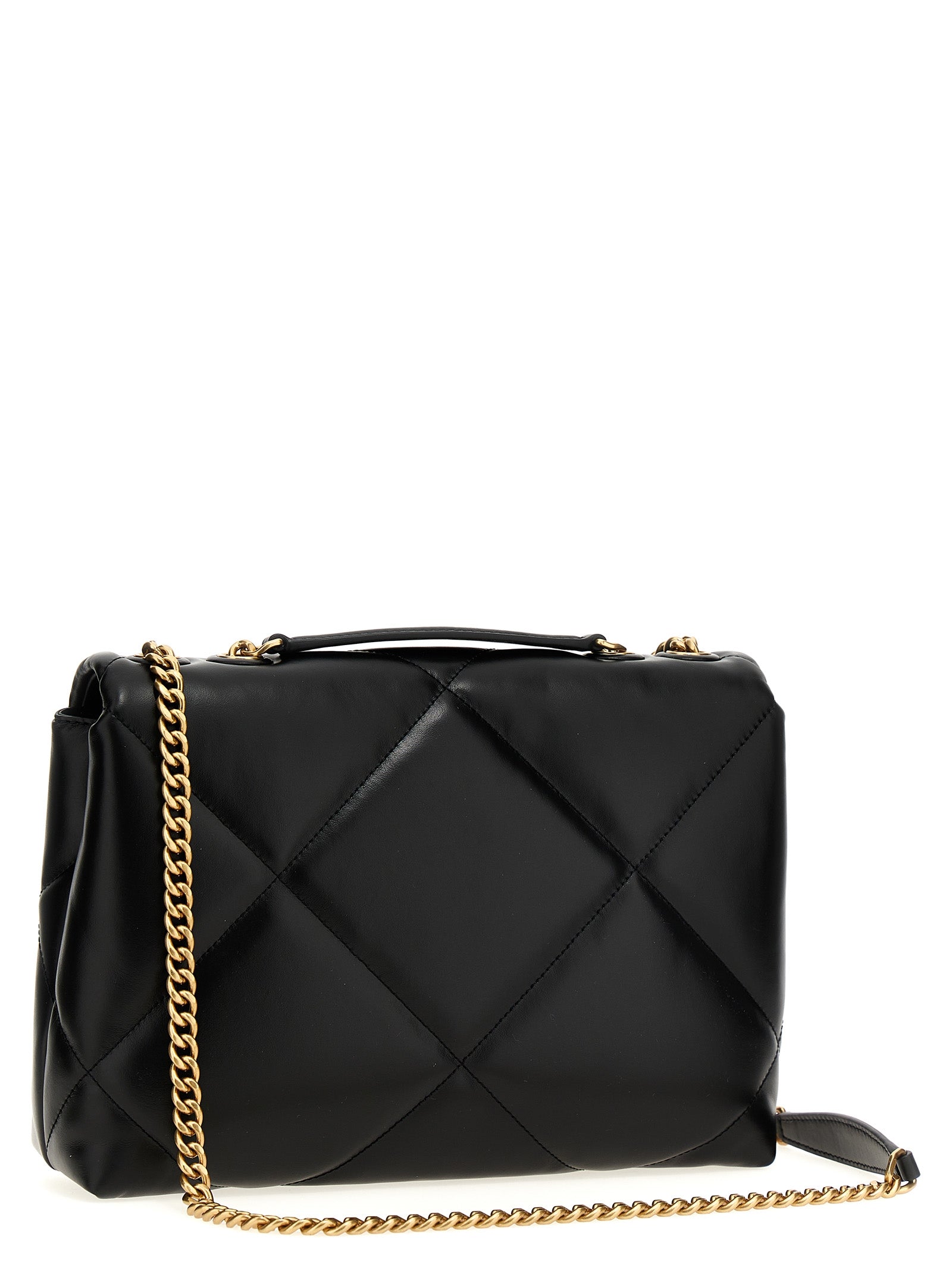 Kira Diamond Quilt Convertible' quilted leather shoulder bag, magnetic flap closure, front metal logo, chain and leather handle.