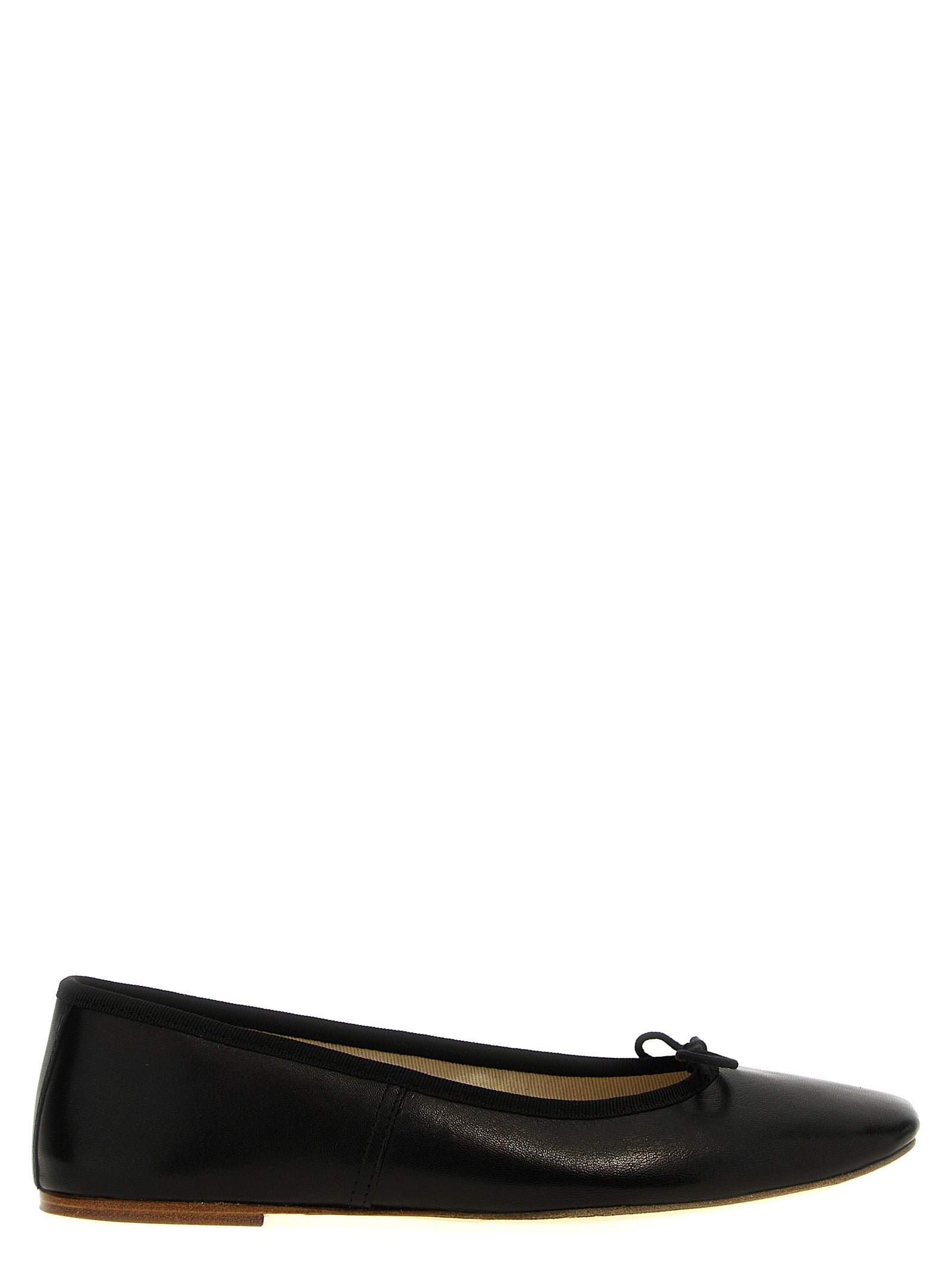 'Leah' leather ballet flats with front bow, square toe, leather sole.