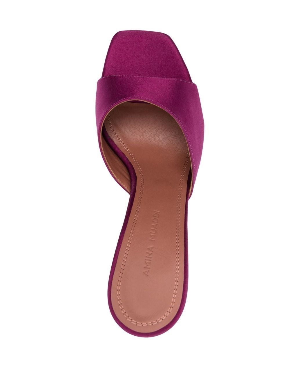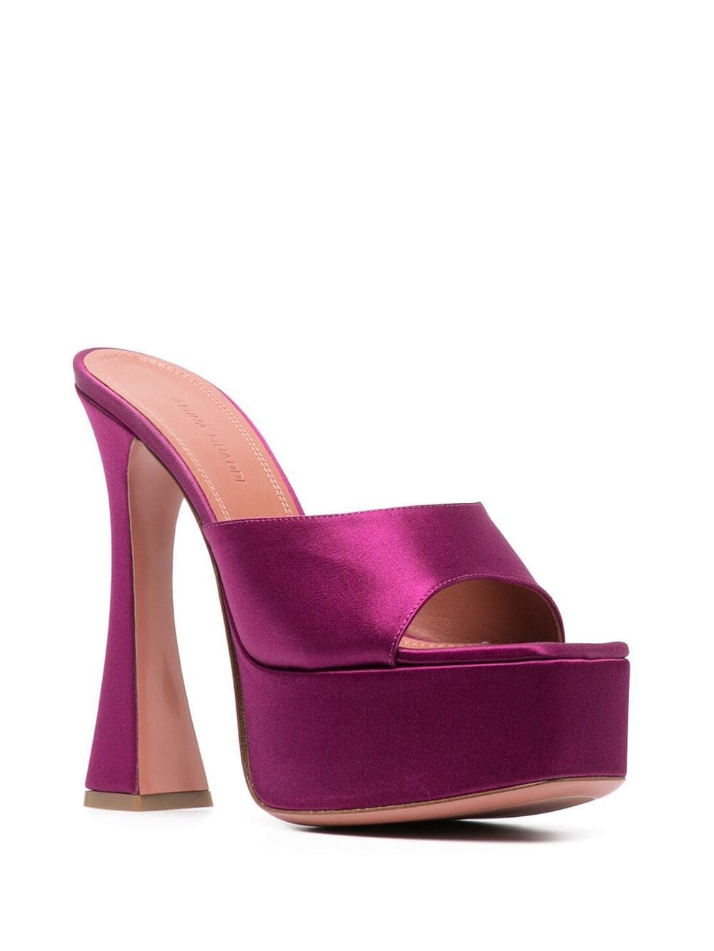 Dalida 140mm sandals from AMINA MUADDI featuring magenta, calf leather, satin finish, open toe, slip-on style, platform sole and high sculpted heel.