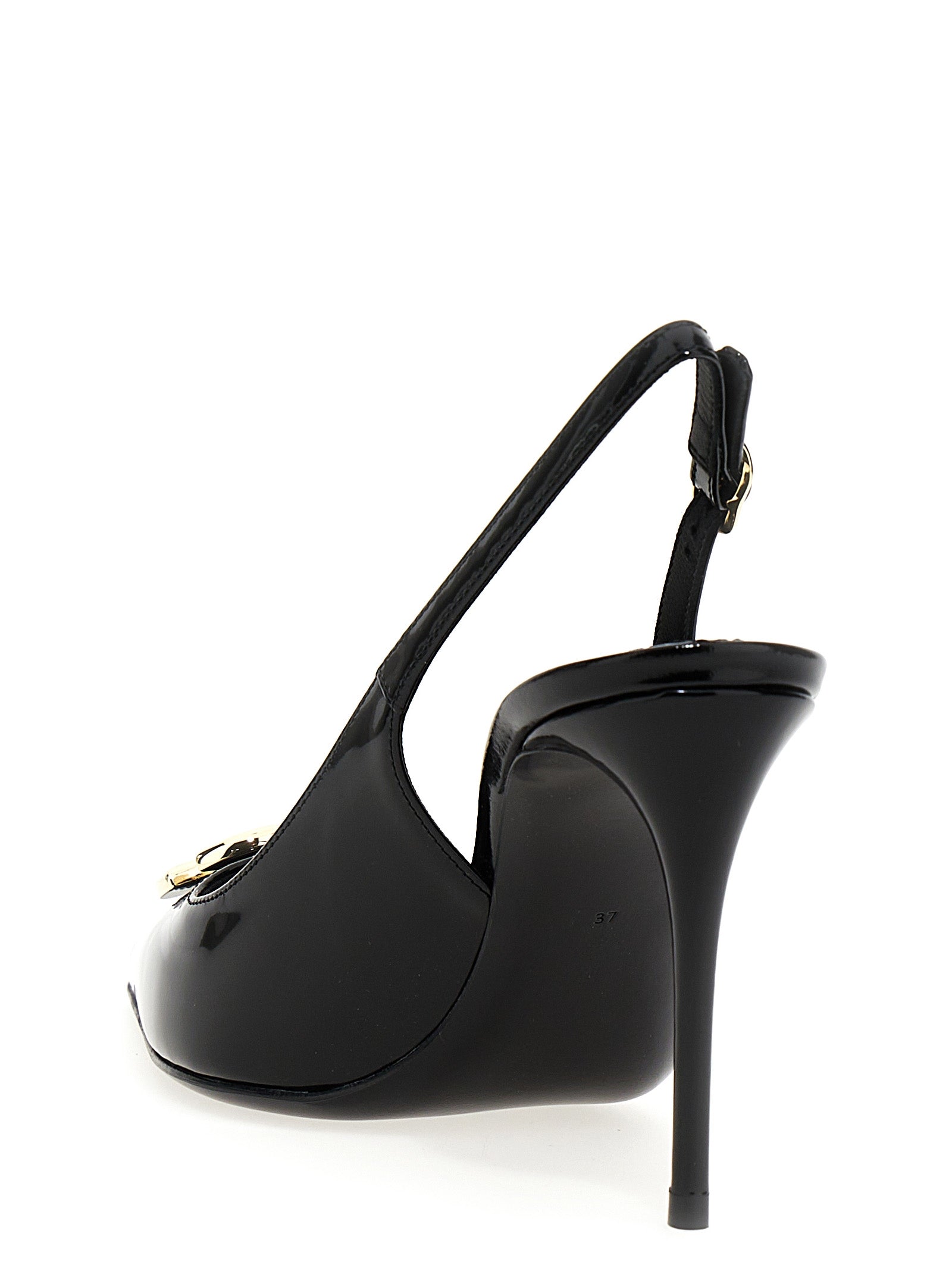 'Lollo' shiny leather slingback shoes with front logo appliqué and adjustable strap.