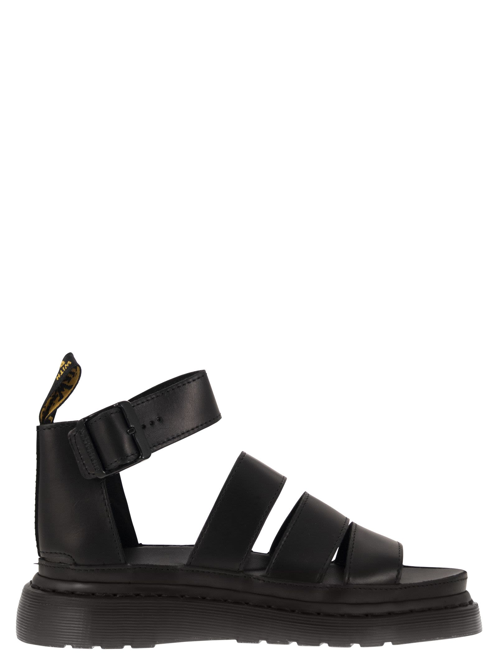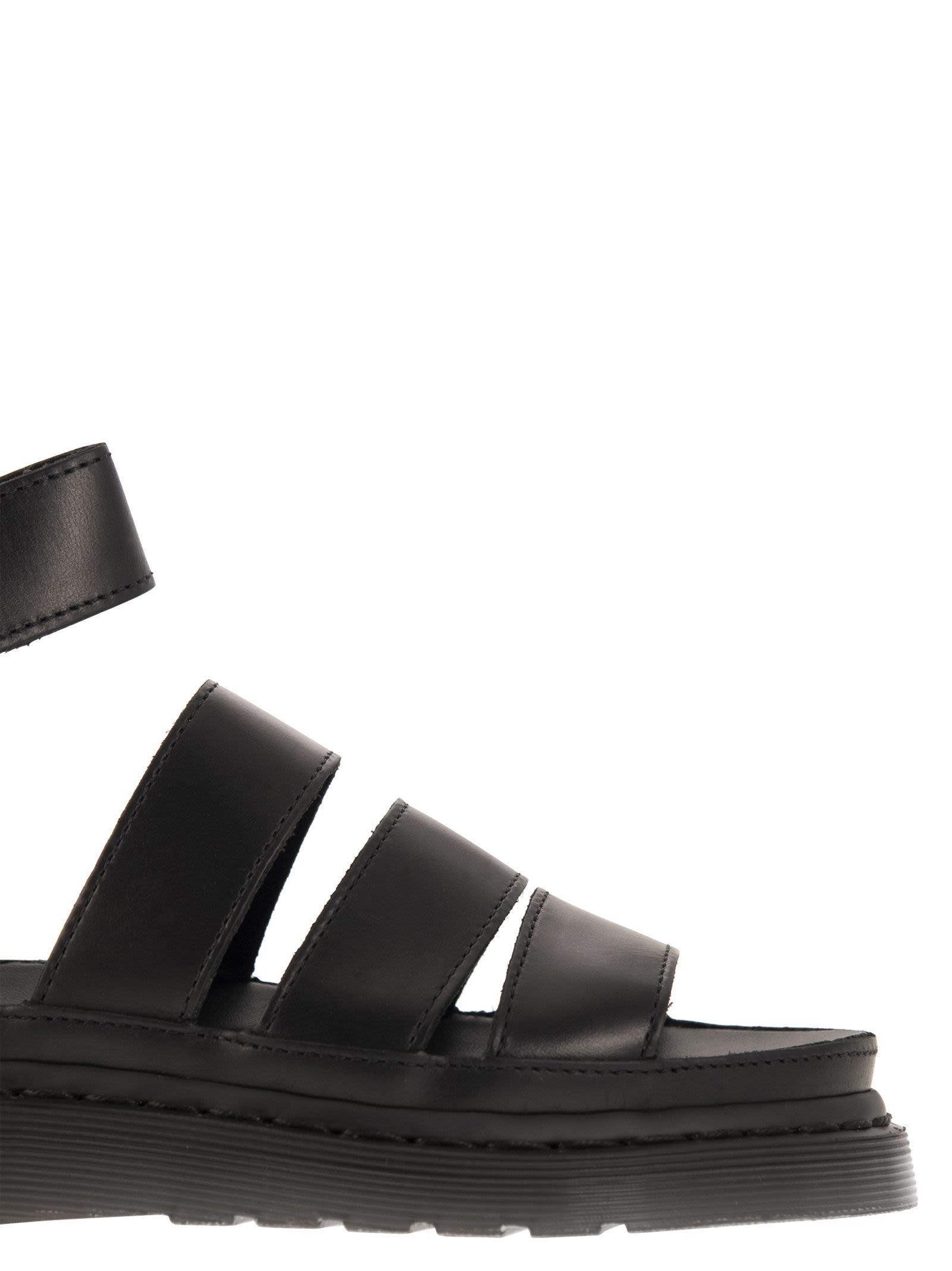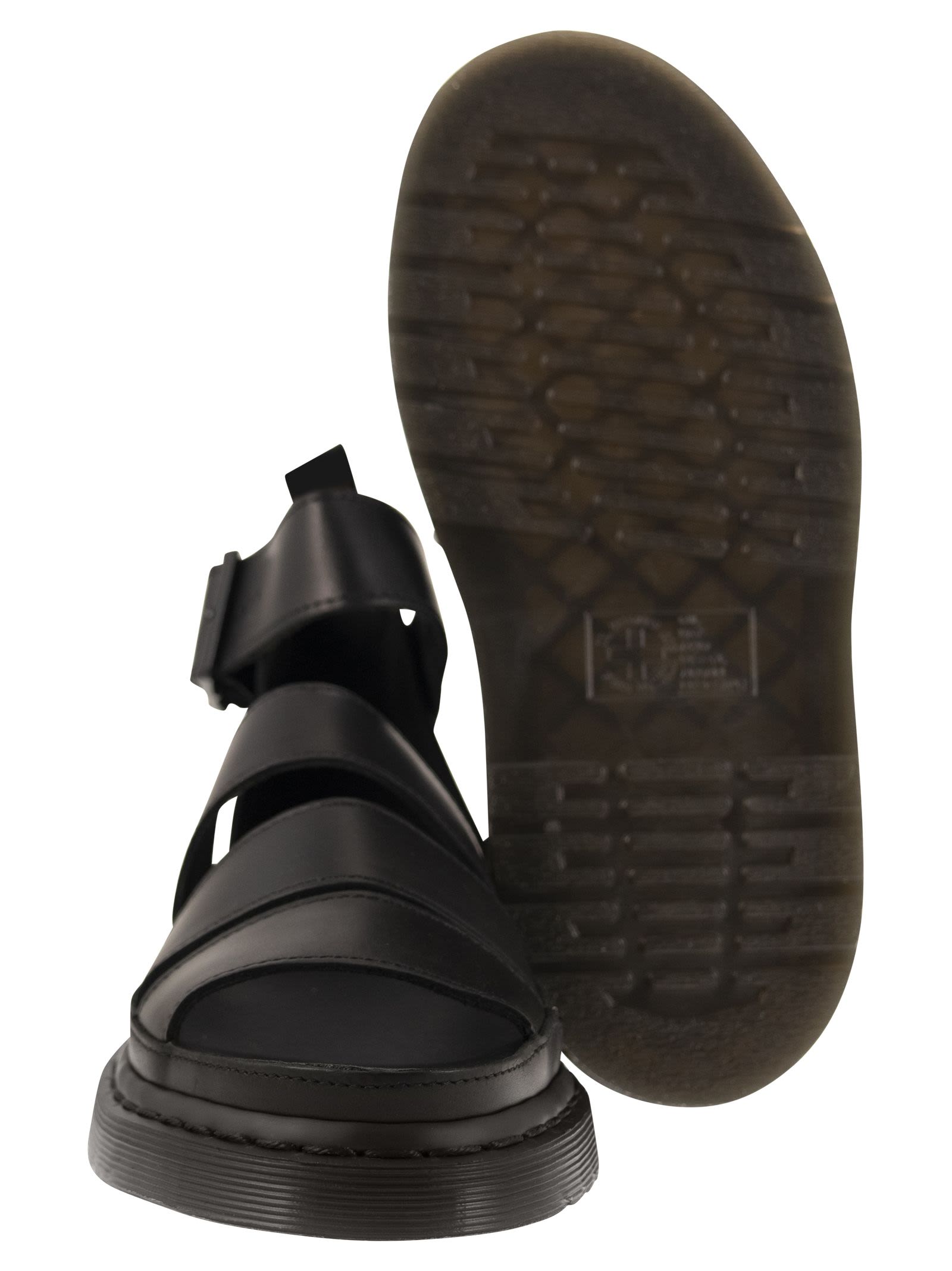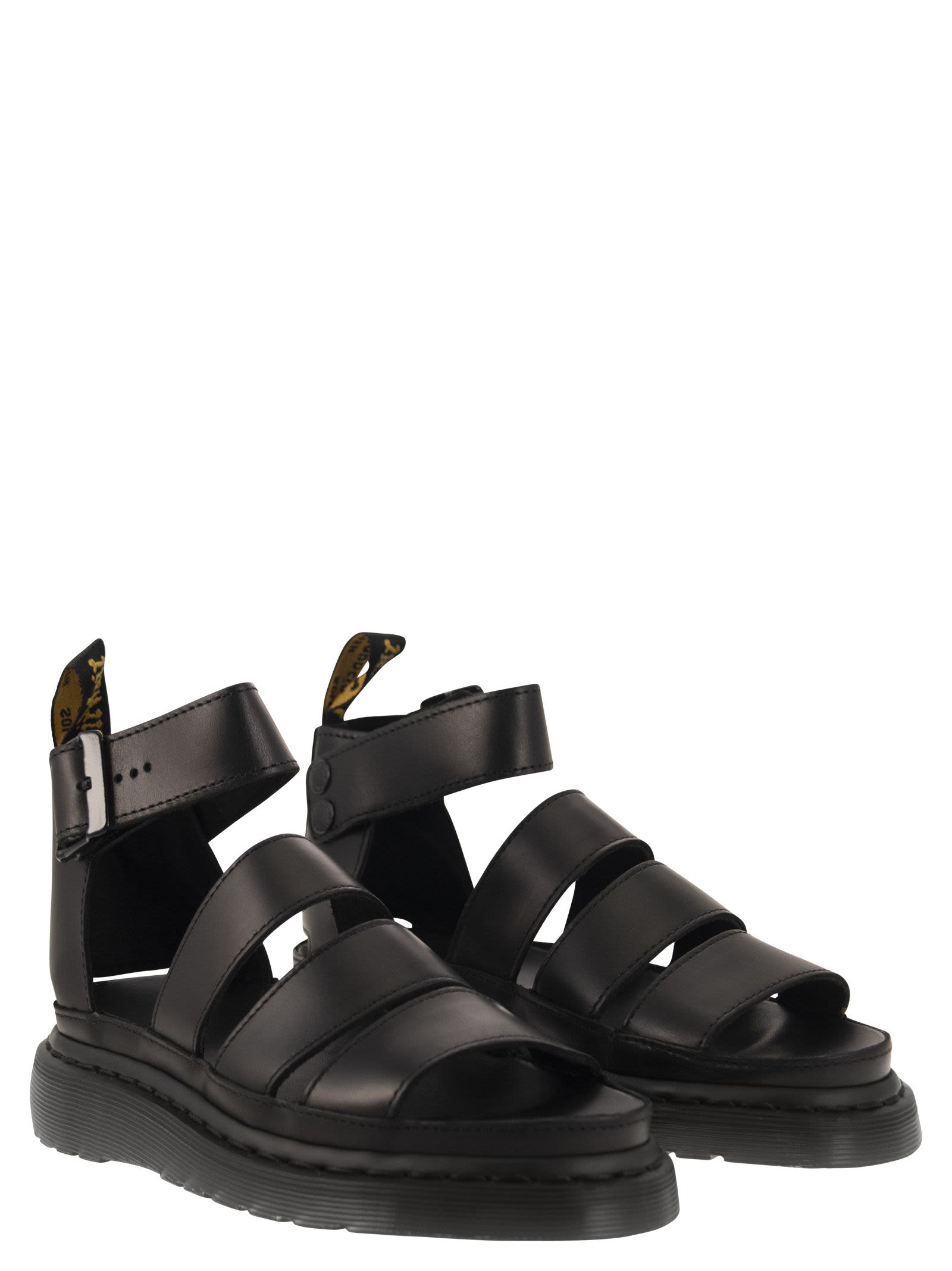 Clarissa II is the classic gladiator sandal with three straps, an adjustable buckle at the ankle and all the Dr. Martens DNA easily recognisable by the grooved edges on a comfortable cushion sole, the visible stitching and a logo back strap. - Gladiator sandal - Adjustable ankle strap - Made from a waxy first-grain leather - Set on the iconic and comfortable Dr. Martens cushioned sole - Made to last with a durable Goodyear welt DESIGNER ID: 24477001