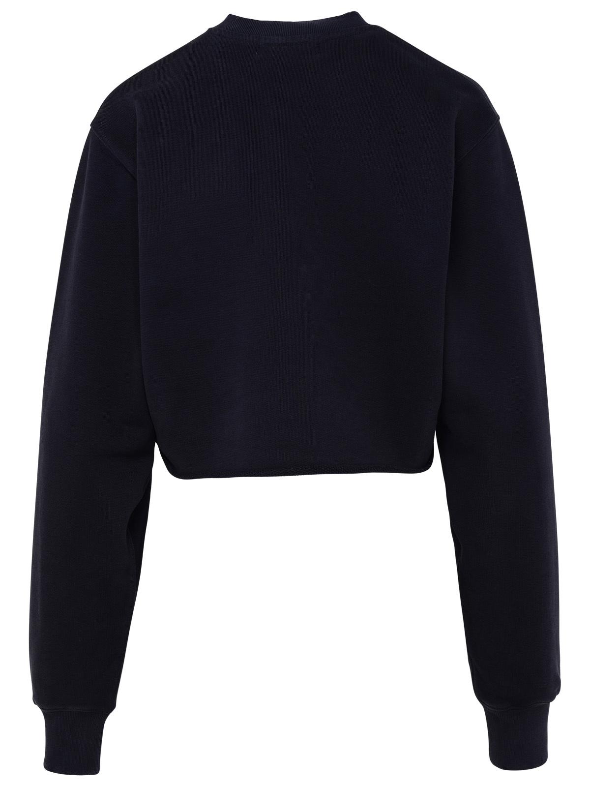 Cropped sweatshirt with micro ribbed crew neck, tonal logo embroidery on the front, ribbed cuffs