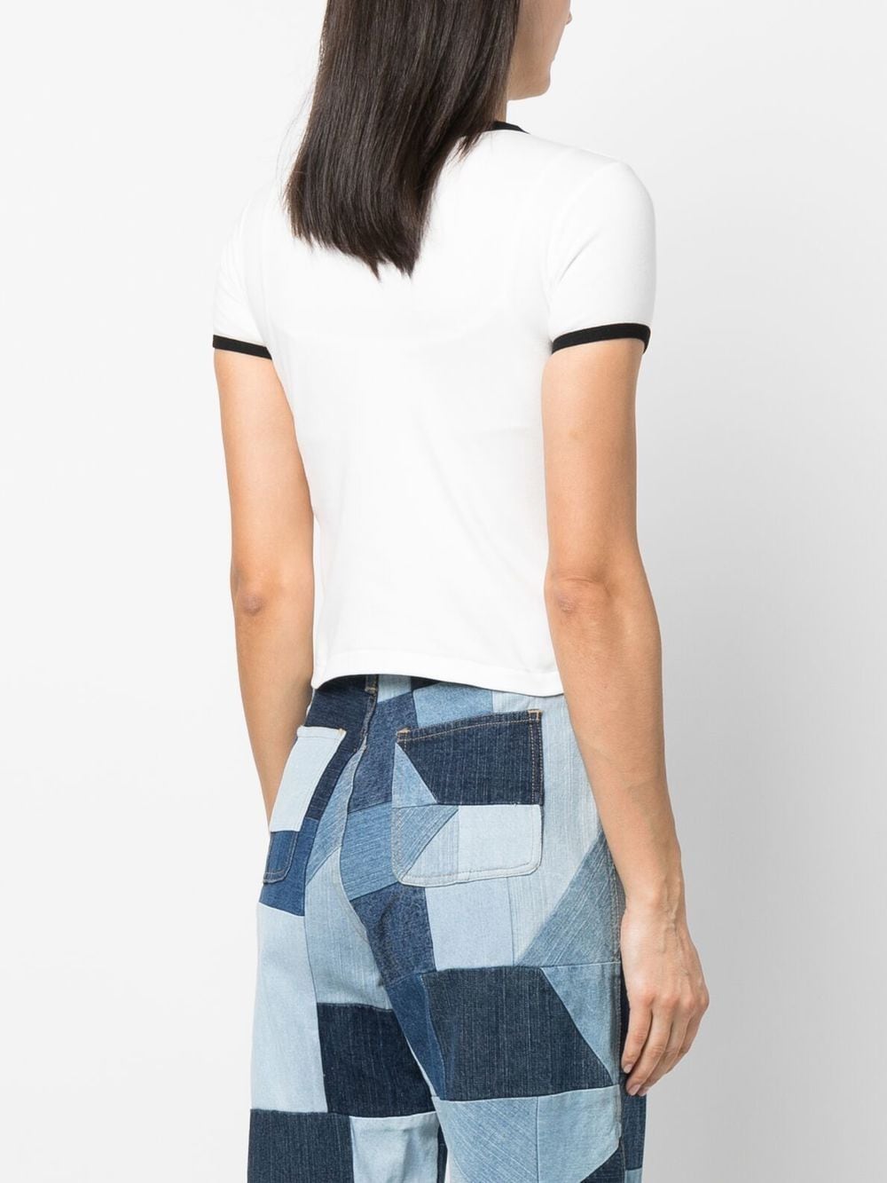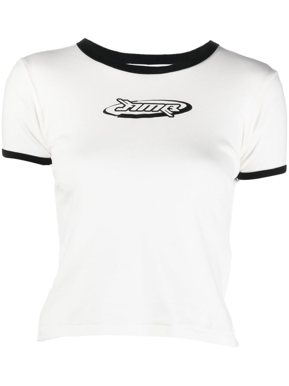 graphic-print cotton T-shirt from AMBUSH featuring white/black, cotton, graphic print at the chest, contrasting trim, crew neck, short sleeves and straight hem.
