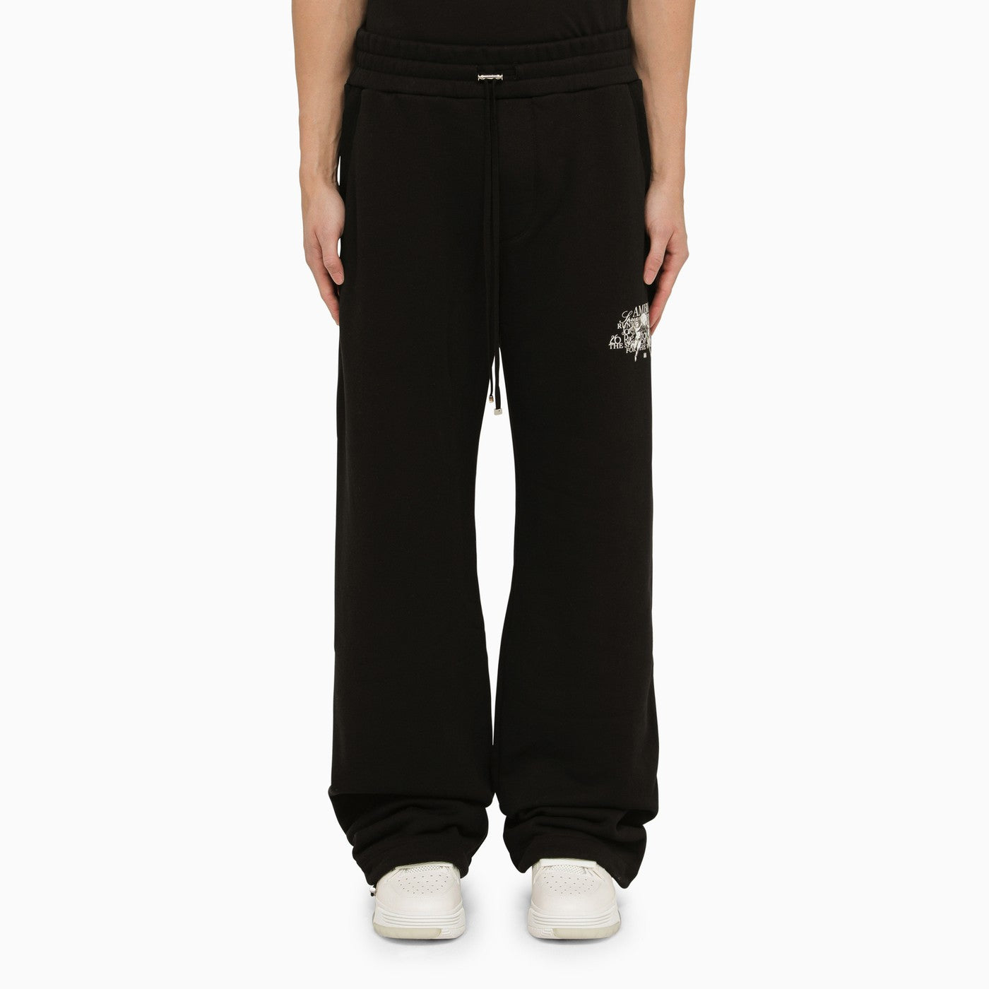 Black cotton jogging trousers from Amiri featuring an elasticated waistband with drawstring, side welt pockets, back pocket and front logo print.