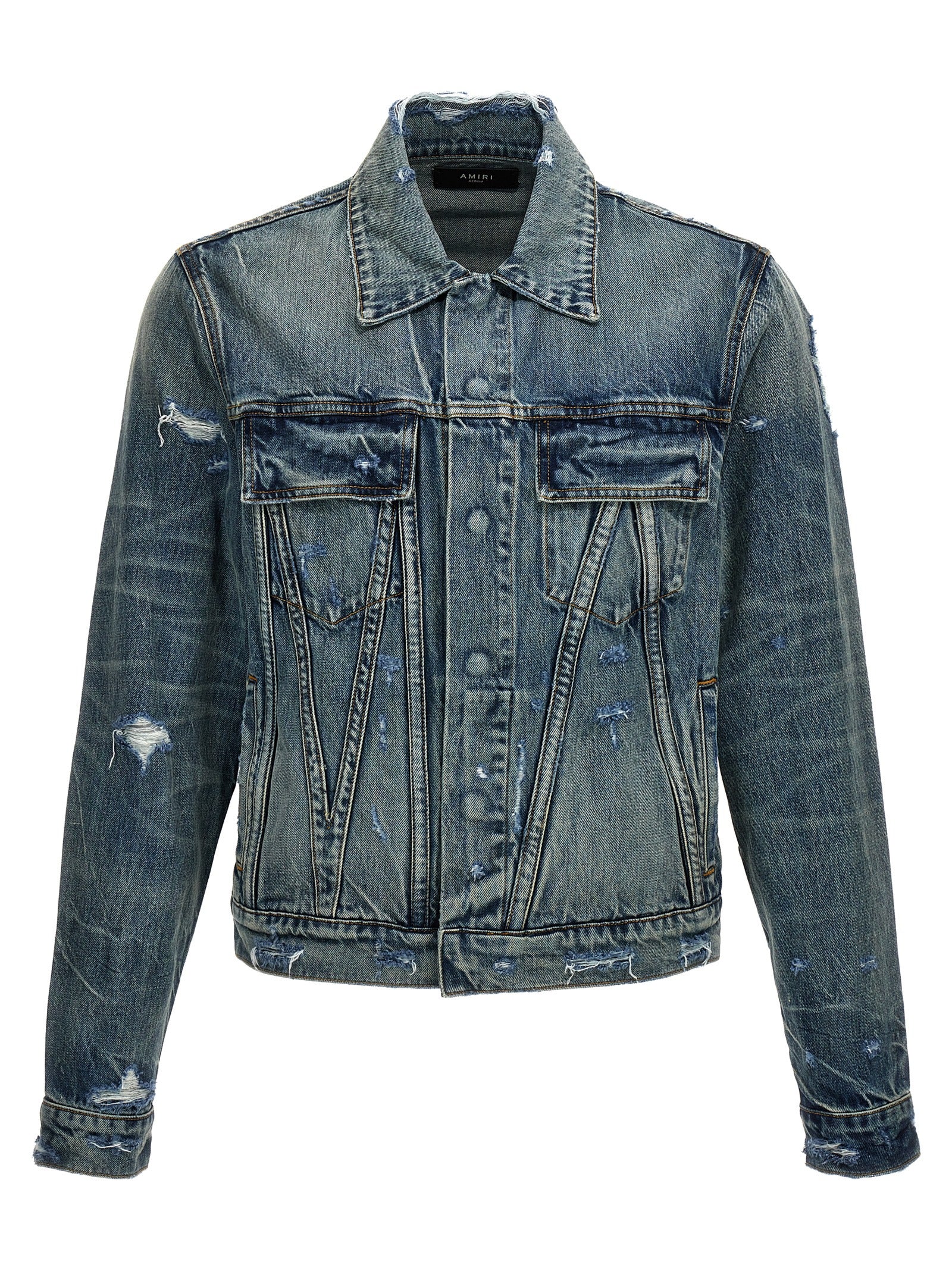 'Trucker' cotton denim jacket with rips, button closure, front pockets.