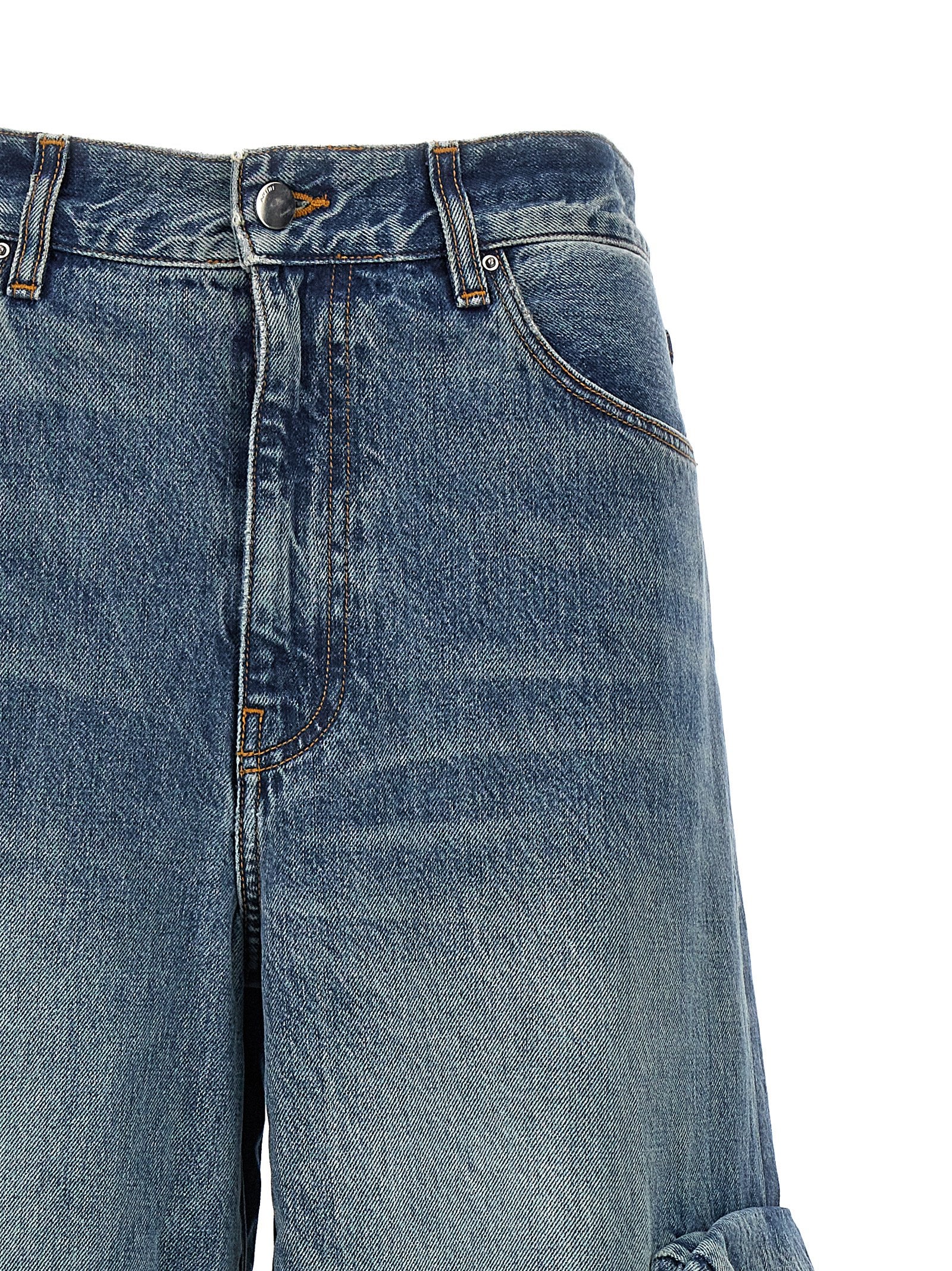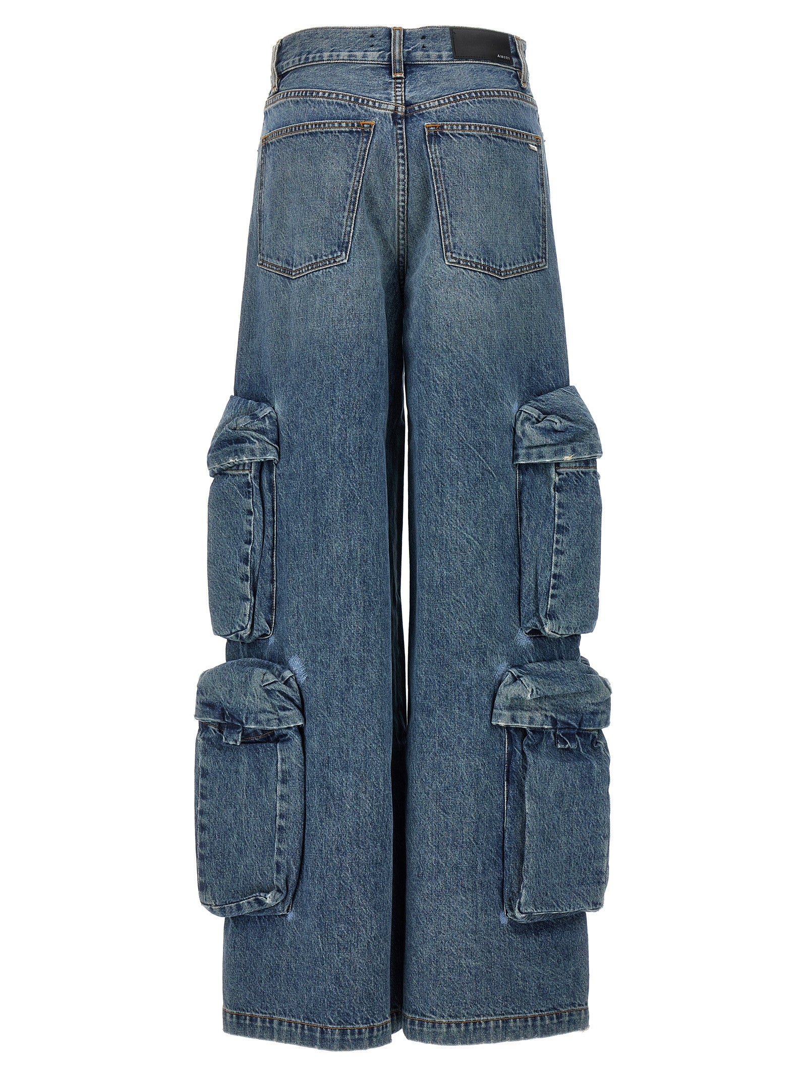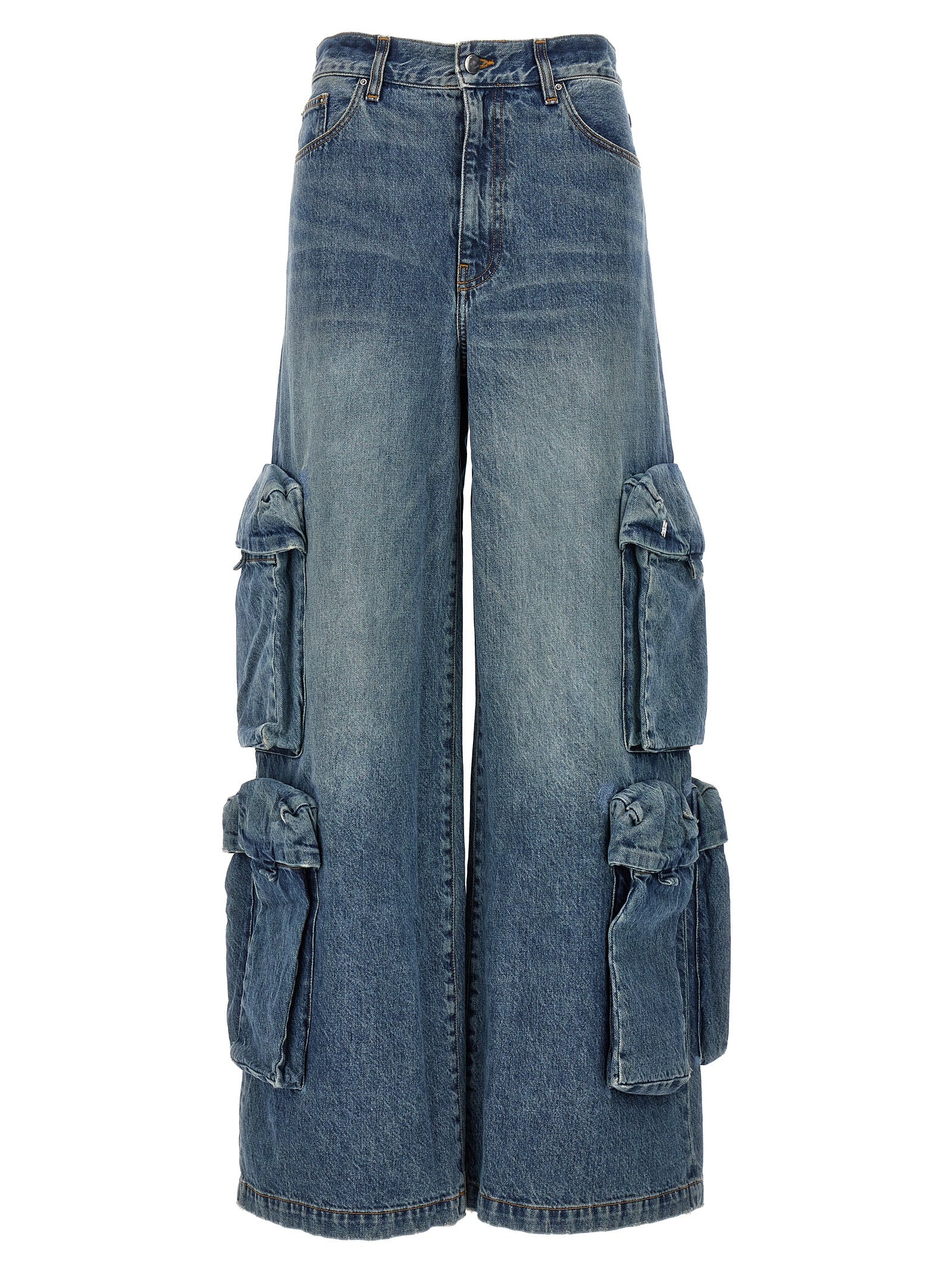 'Baggy Cargo' cotton denim jeans with zip and button closure, pockets, wide leg.
