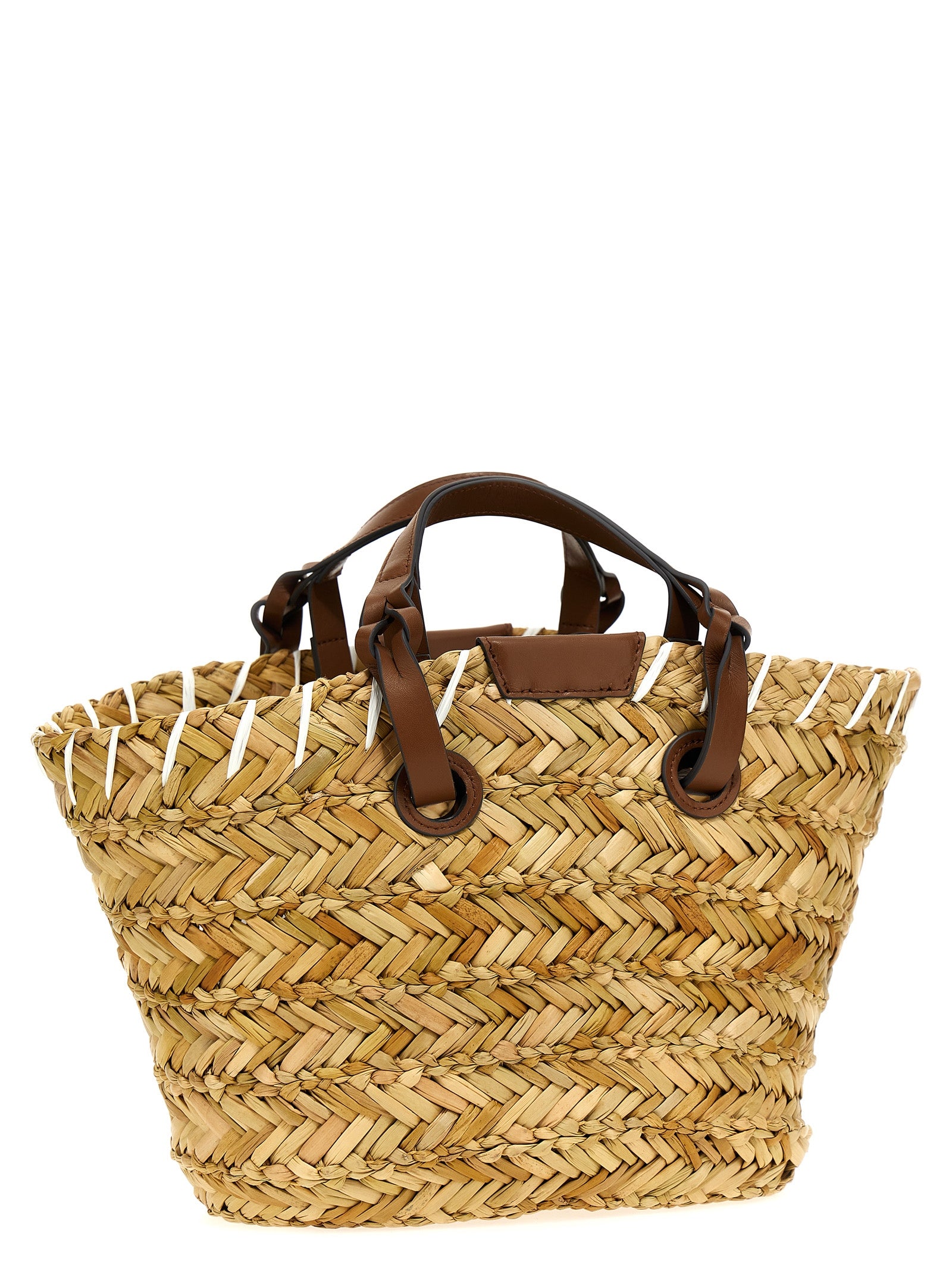 Small 'Paper eyes' seaweed shopping bag with front eye patch and fixed leather handle.