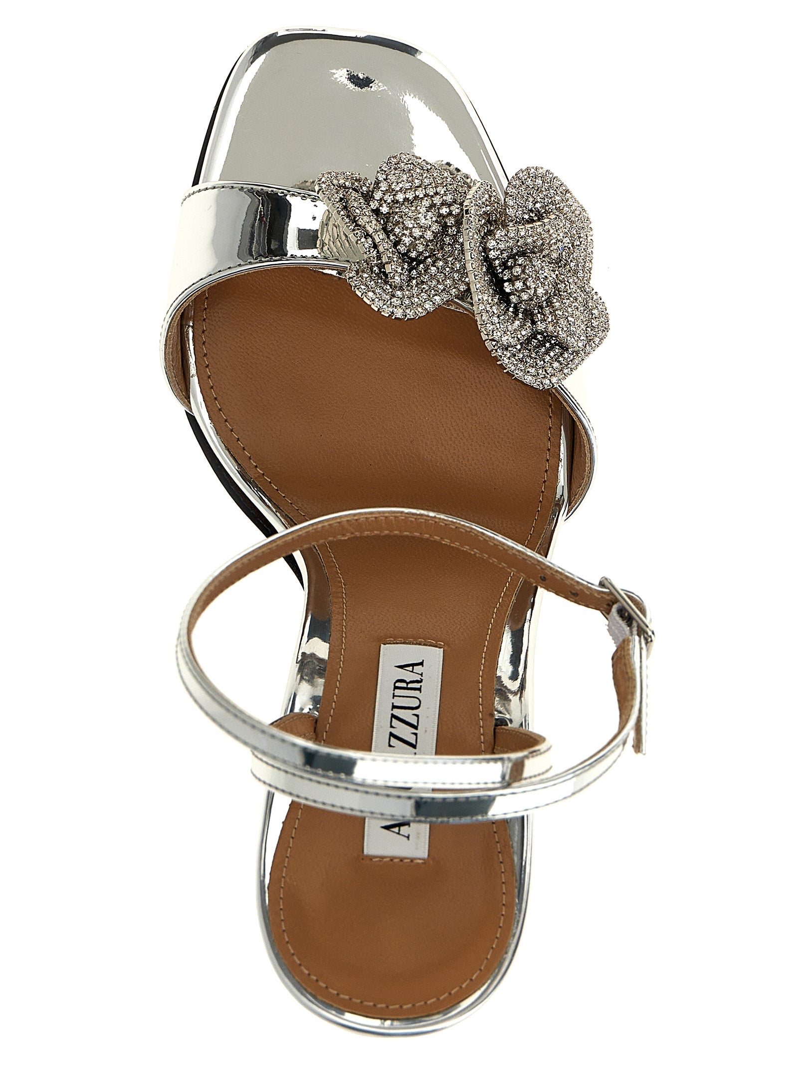 'Crystal Orchid' laminated leather sandals with front floral jewel application, ankle strap, heel.
