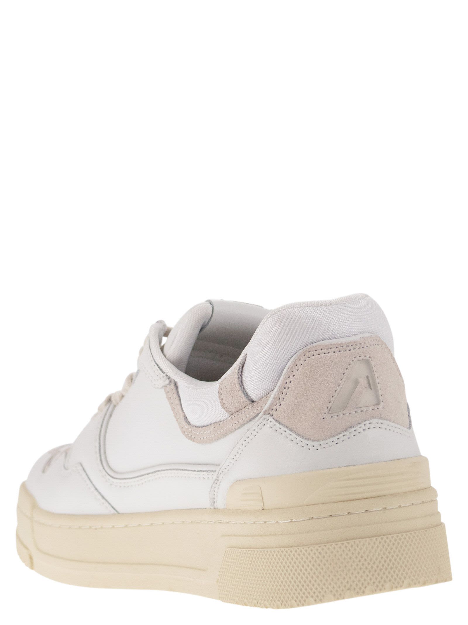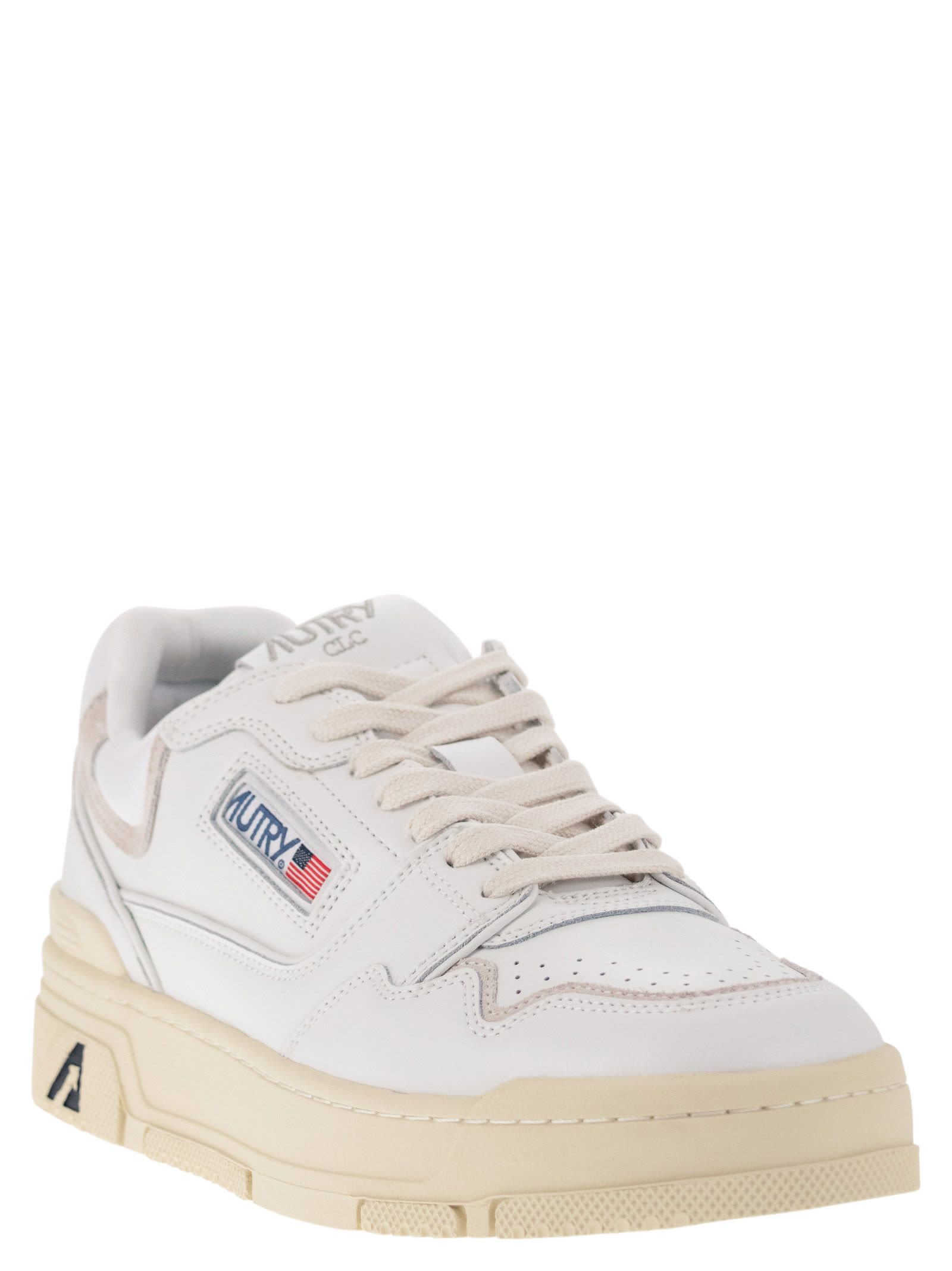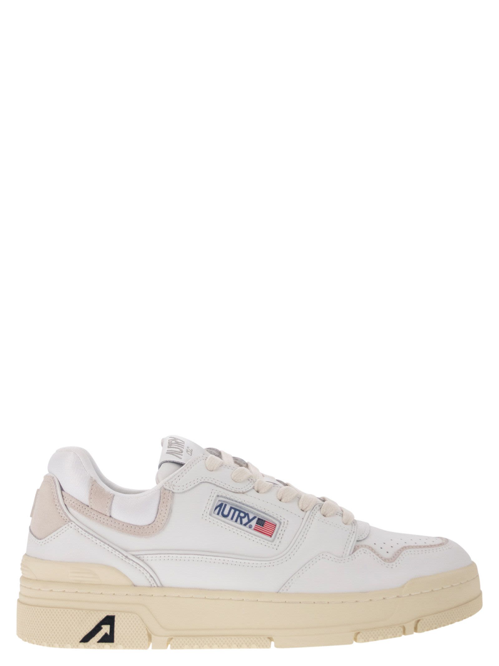 Autry's deep-rooted sporting heritage reaches new heights with CLC, a contemporary model inspired by the vibrant atmosphere of basketball courts, with explicit references to basketball trainers of the past. Striking a perfect balance between urban and sporty, CLC breaks away from fashion trends with a distinctive integrated design from toe to sole, which in turn comes in a taller version than the classic Autry models. - Toe with perforated section. - Flat cotton laces. - Leather tongue with matching stitched label. - Padded nylon collar. - Iconic rubber embossed logo on the heel. - Lycra and cotton terry lining. - Distinctive sole with different rubber sections and iconic logoing DESIGNER ID: ROLMMM15