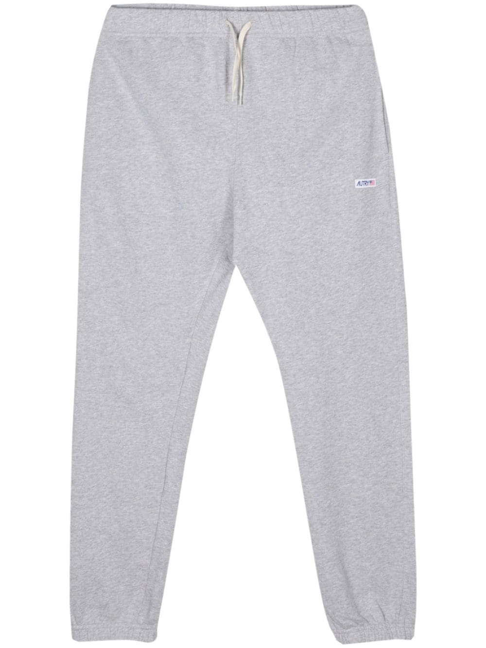 grey cotton jersey texture mélange effect logo patch to the front logo tag to the rear logo-print drawstring high-waisted tapered leg elasticated ankles slip pockets to the sides rear patch pocket elasticated drawstring waistband French terry lining