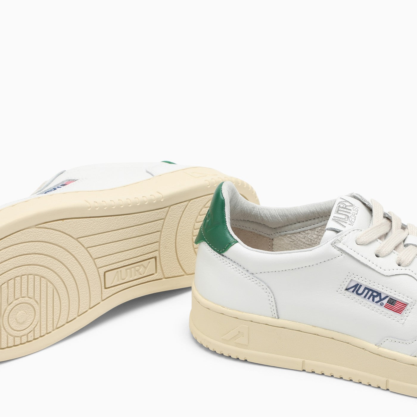 Autry low-top sneakers in white leather with a rounded toe, perforated leather on the front, a rubber sole, contrasting detail on the heel and applied logo on the side.