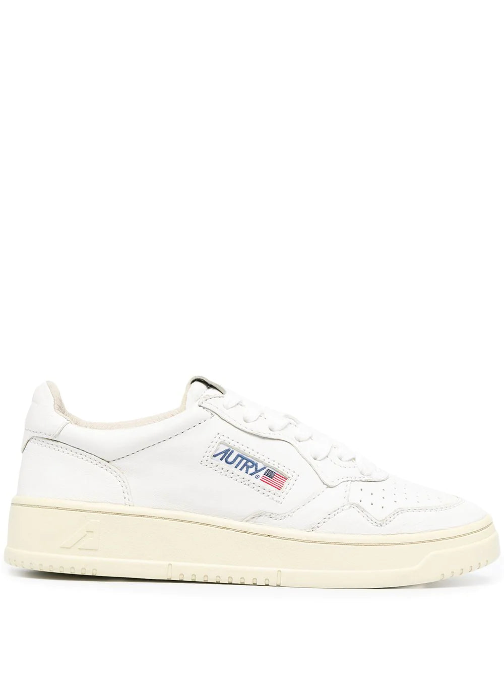 Openwork design, logo patch on the tongue, side logo patch, tonal stitching, round toe, lace-up front fastening and rubber sole. Material: leather. White color.