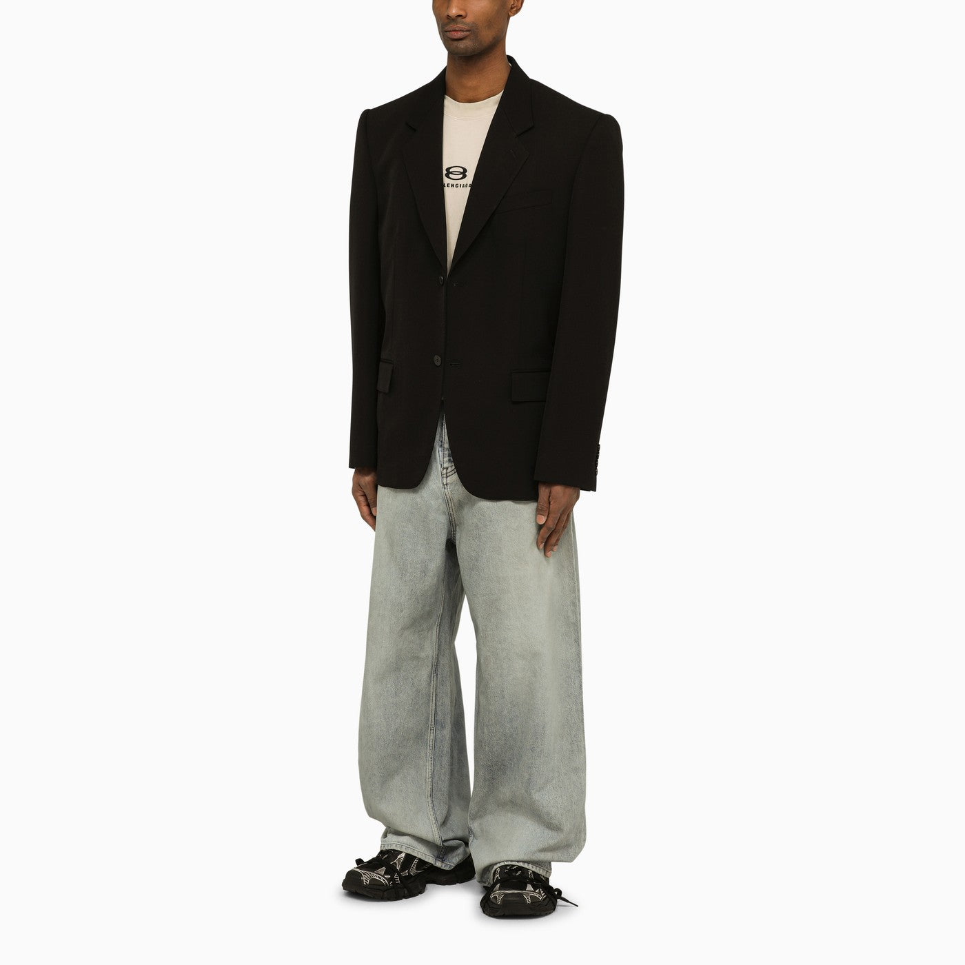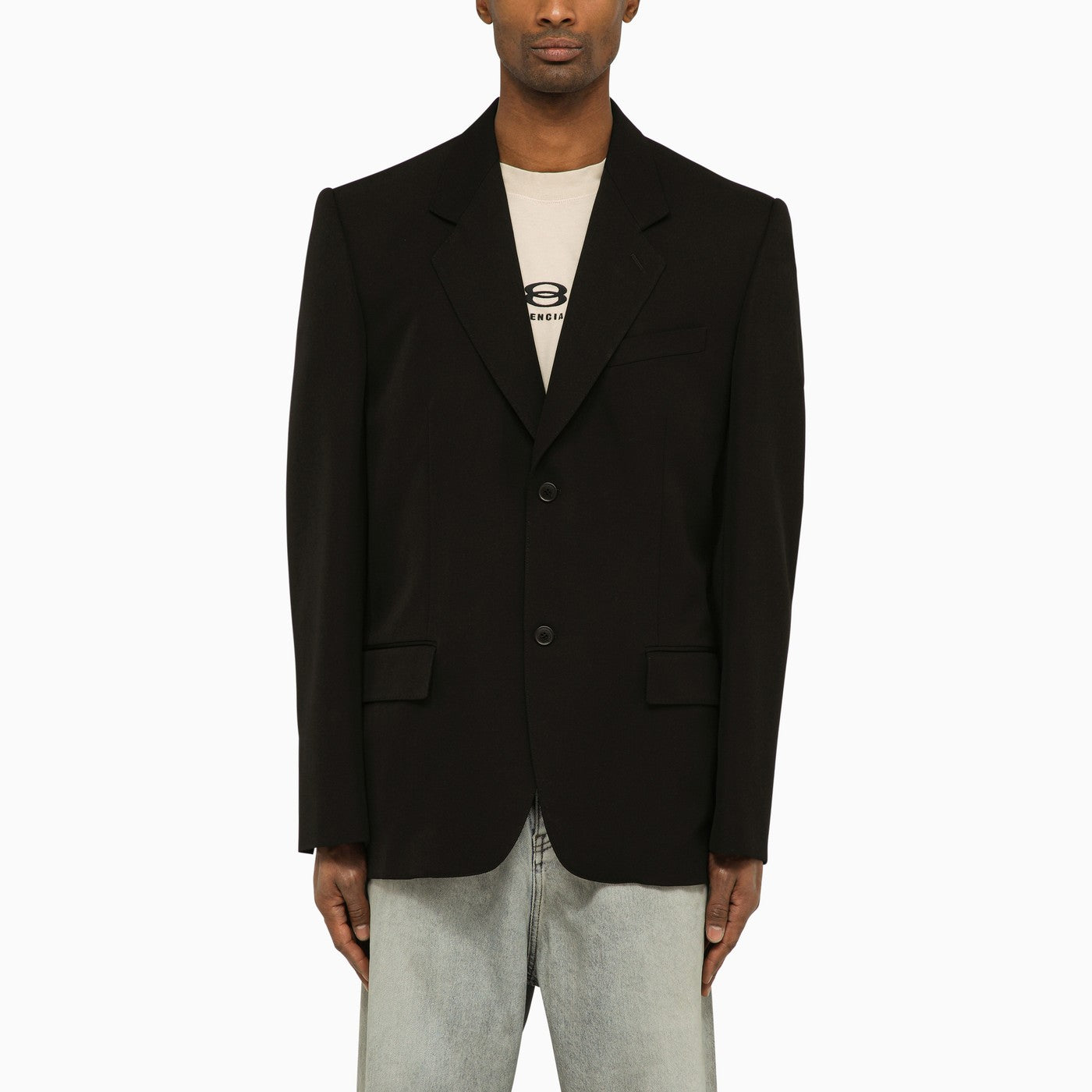 Black wool single-breasted jacket from Balenciaga featuring classic lapels, a two-button front fastening, front flap pockets, buttoned cuffs and a central back vent.