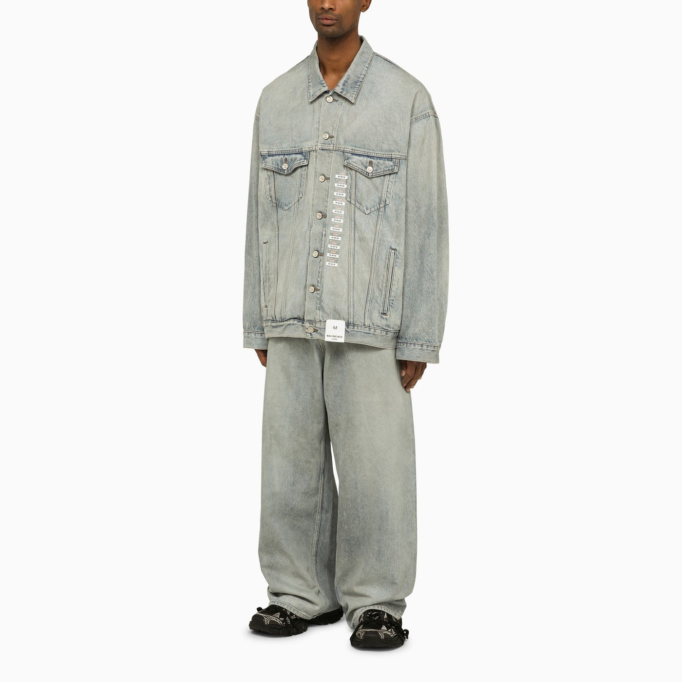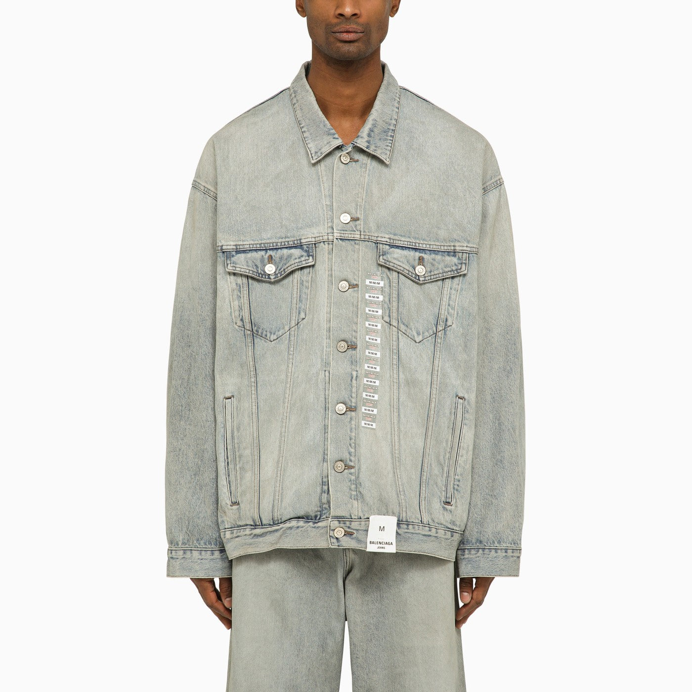 Balenciaga Dirty Blue Denim Jacket With Size Stickers