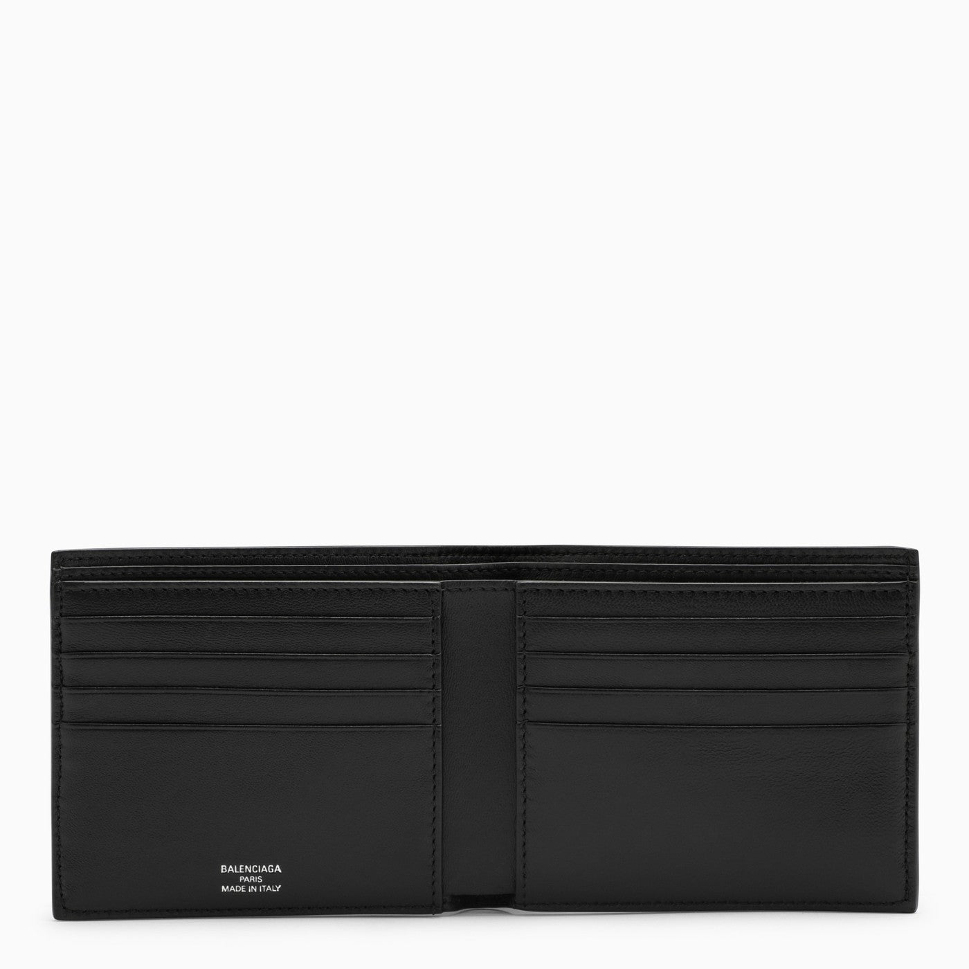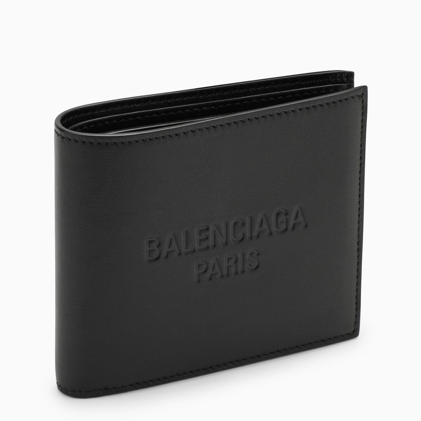 Billfold wallet by Balenciaga in black smooth leather featuring an embossed logo on the front, eight card slots, two banknote pockets and two receipt compartments.