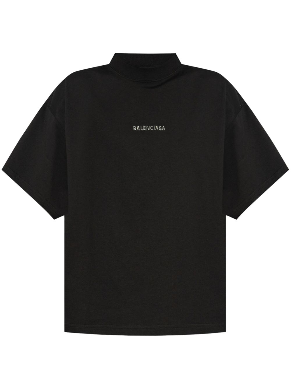 Balenciaga Back Strass Cropped Cotton T Shirt