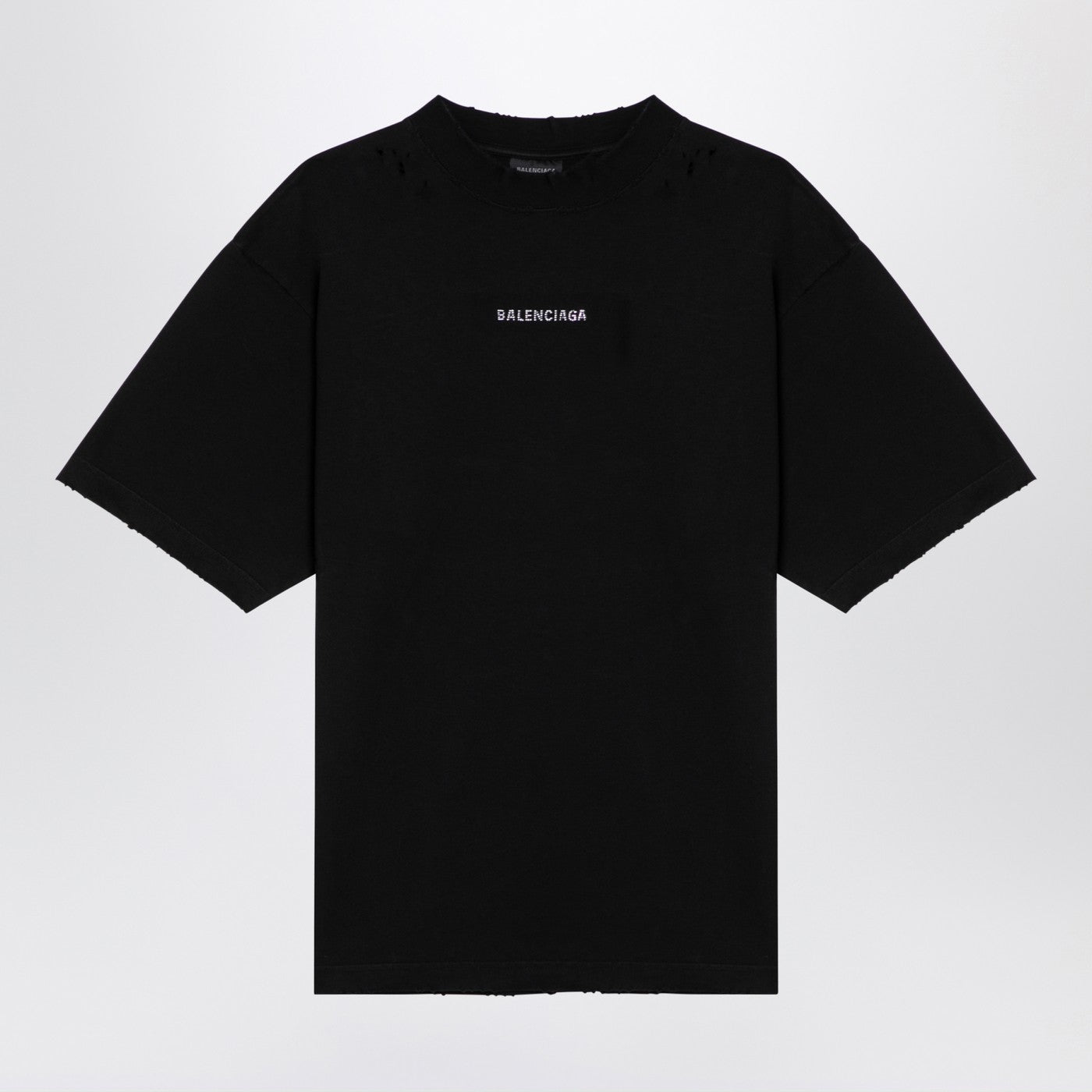 Black washed cotton crew-neck T-shirt from Balenciaga featuring short sleeves, a contrasting front lettering logo print and a straight hem.