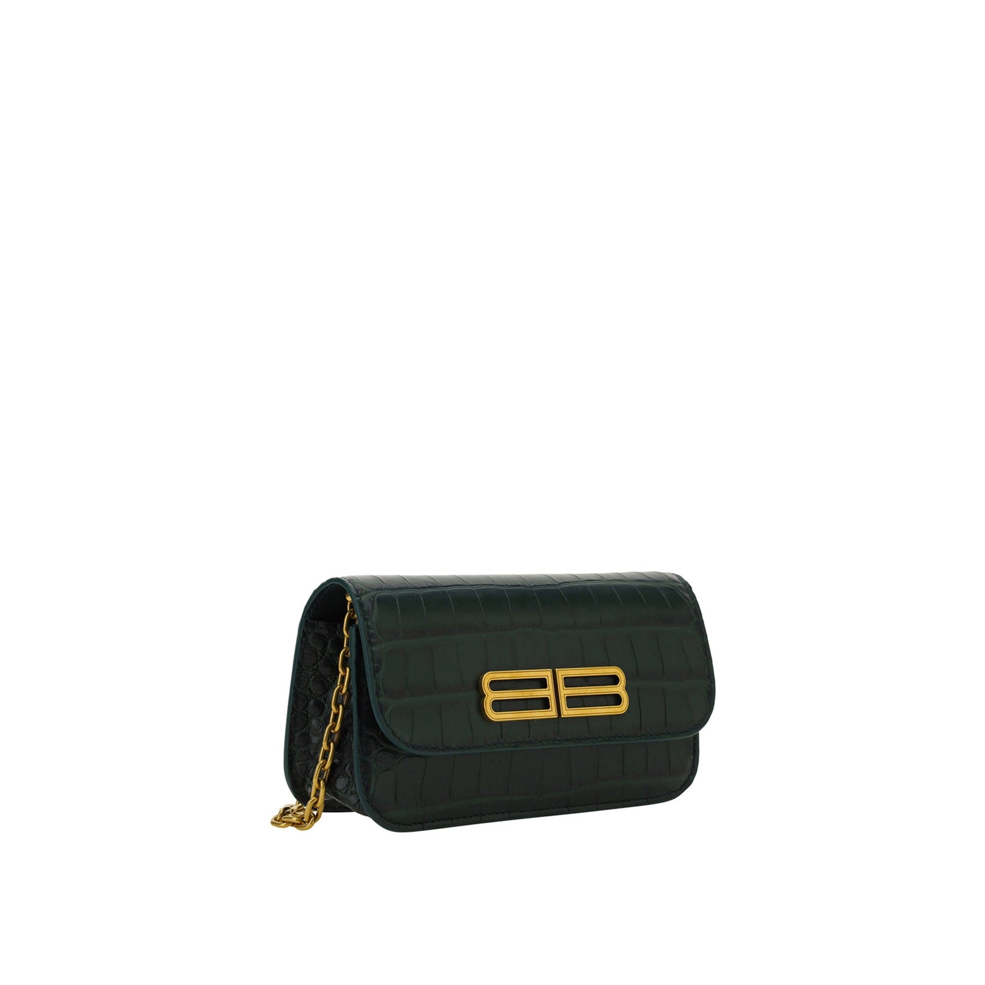 - Composition: 100% calf leather - Flap top with magnetic closure - Chain shoulder strap - Gold tone logo lettering - Length 18 cm / 7 in - Height 8 cm / 3,1 in - Width 5 cm / 2 in - Made in Italy -