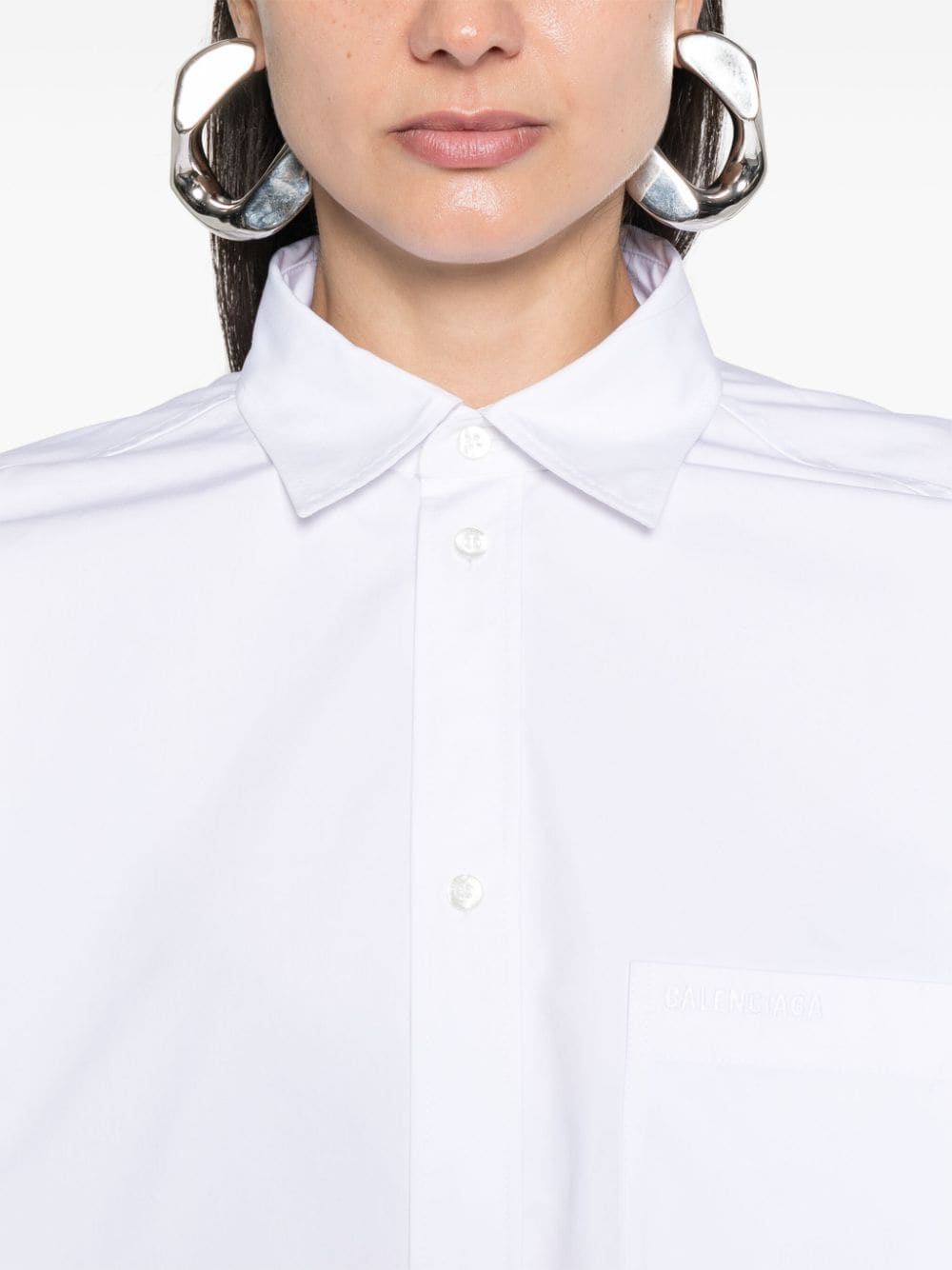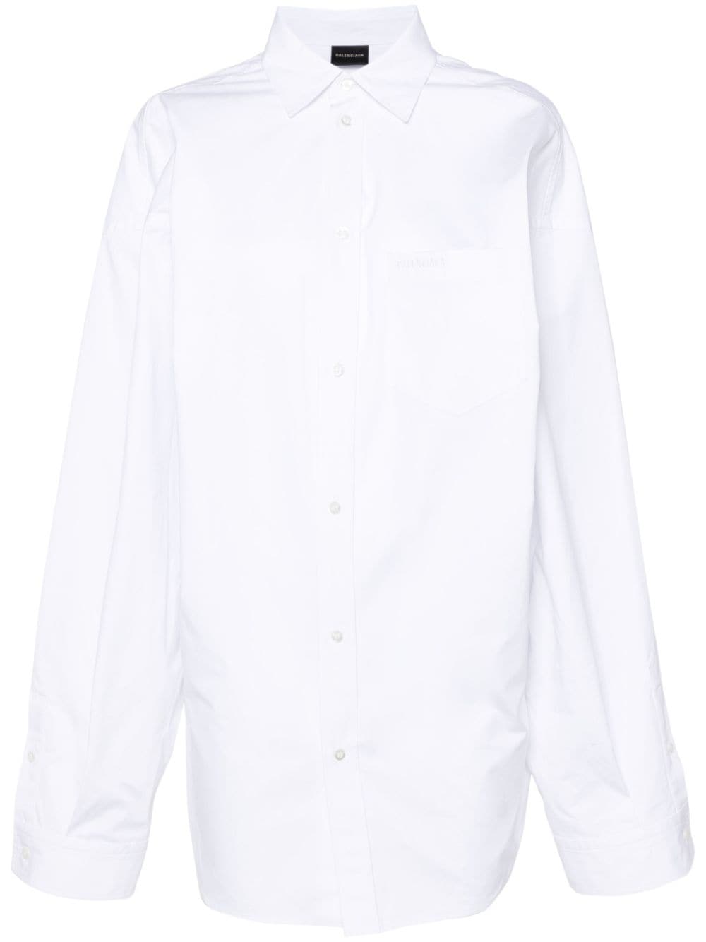 white poplin texture asymmetric design spread collar drop shoulder extra-long sleeves embroidered logo at the chest chest patch pocket curved hem front button fastening We've partnered with Good On You — an independent agency that rates how brands perform in relation to their impact on the planet, people and animals, with a multi-criteria rating simplified to a five points scale. In order to be awarded our conscious label, larger brands need to score a minimum of four out of five ('Good'), while smaller brands must score at least three out of five ('It's A Start'). This item comes from a brand rated three out of five ('It's A Start') by Good on You at the time it was added on Balardi. Please note, this is a brand-level rating and does not guarantee that this product is made with conscious materials. Learn more about what makes a product Conscious on our Conscious Criteria page