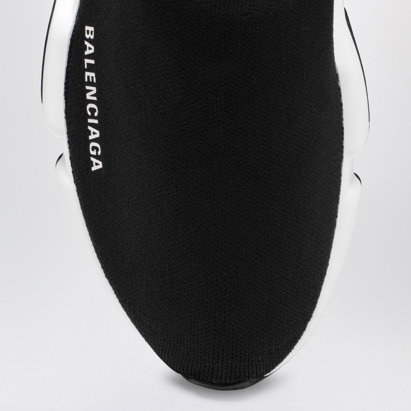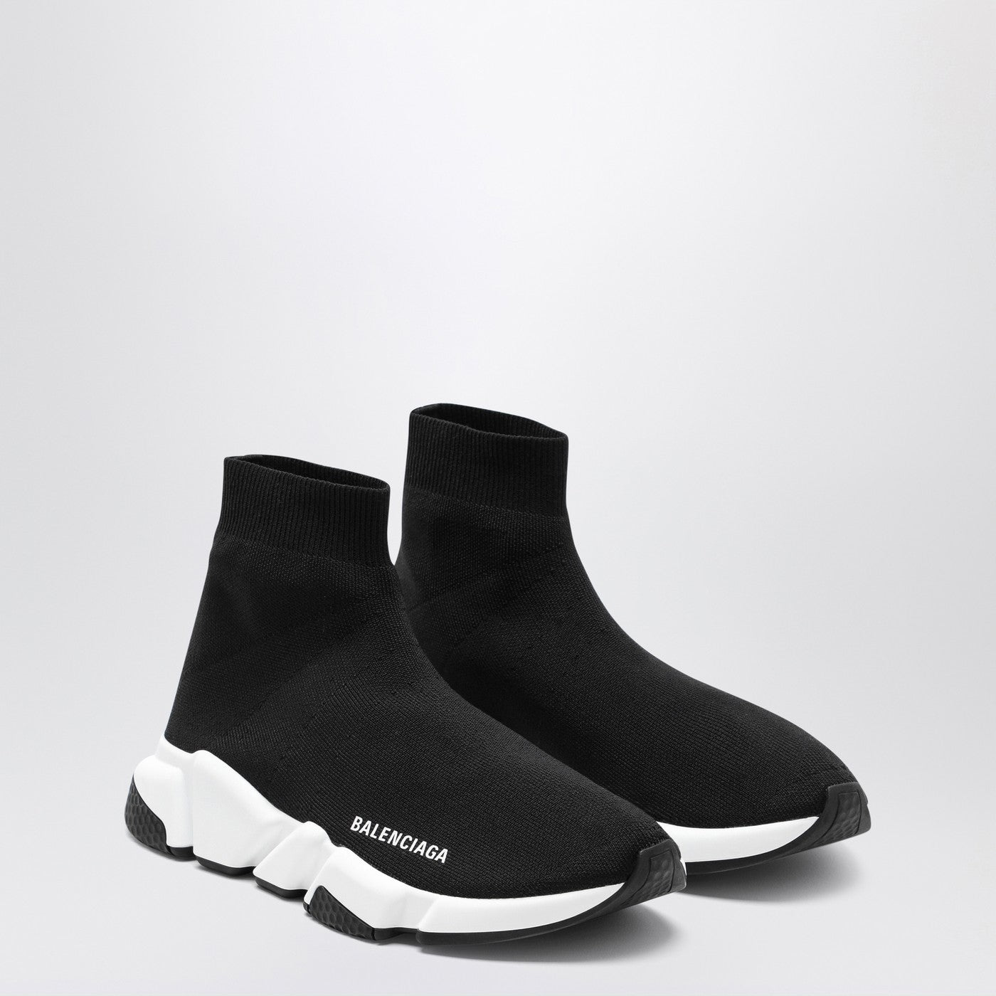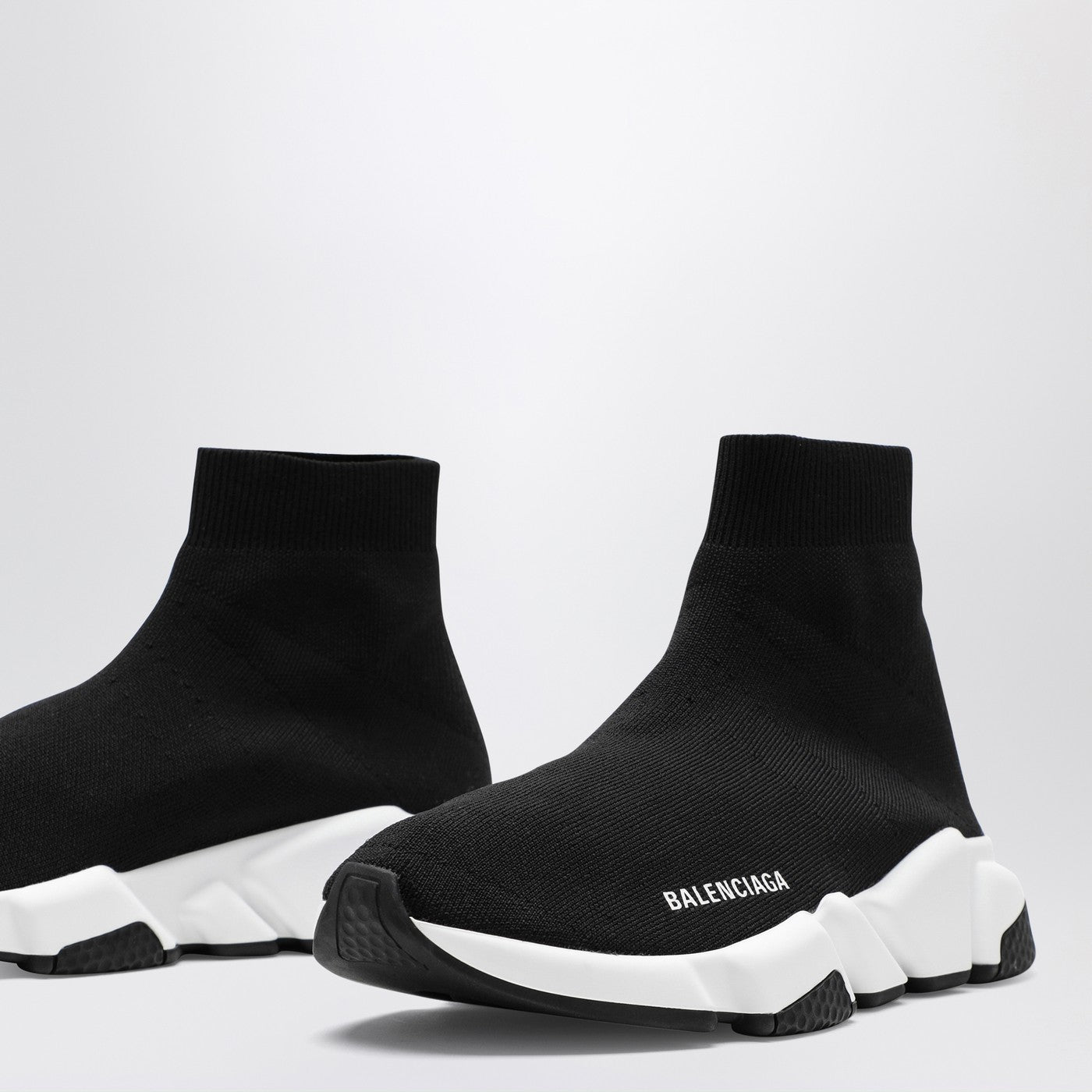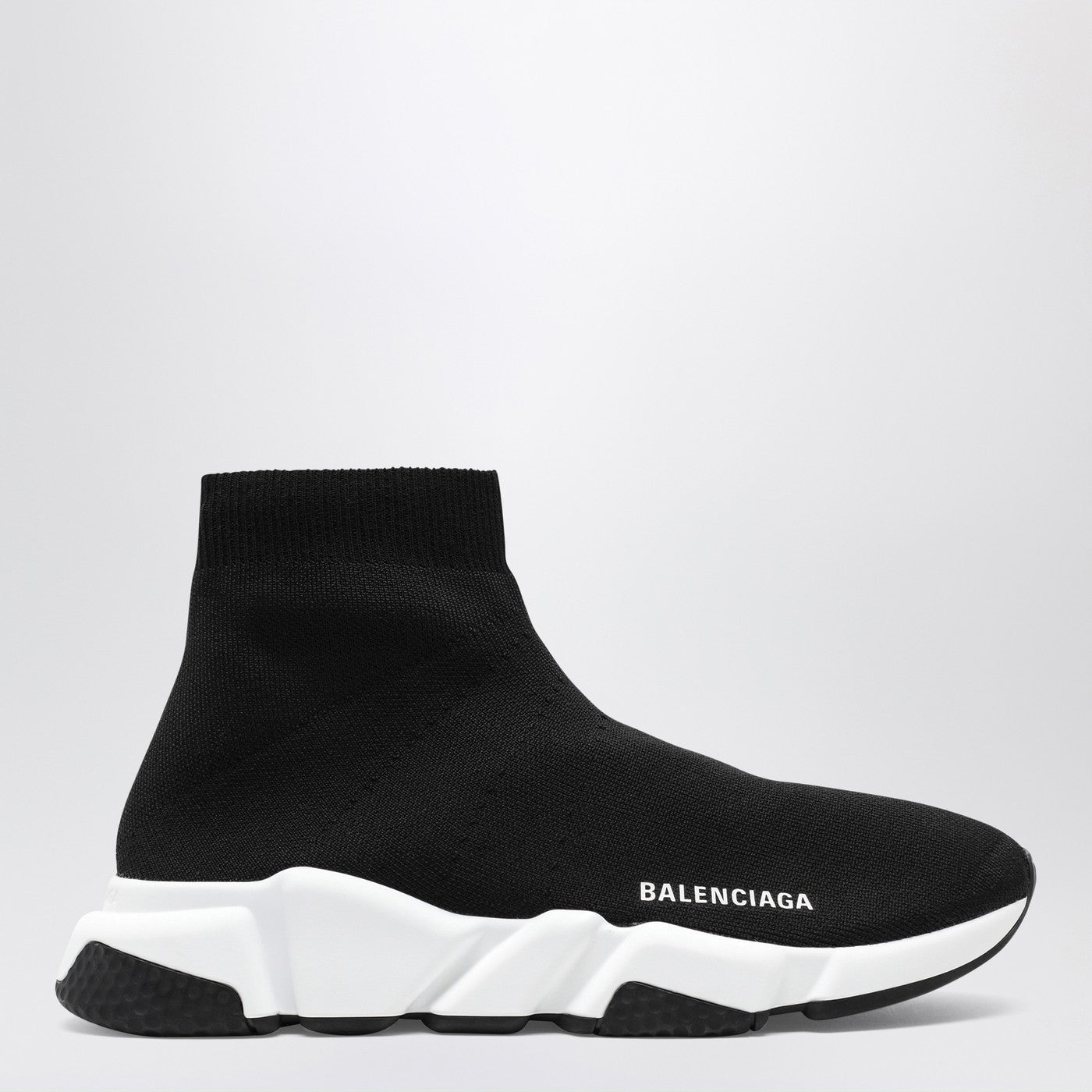 Sneakers by Balenciaga with a sock style design made featuring 3D black-knit technical fabric, white patterned and ultra-flexible contrasting sole with black inserts. Logo lettering detail on one side.