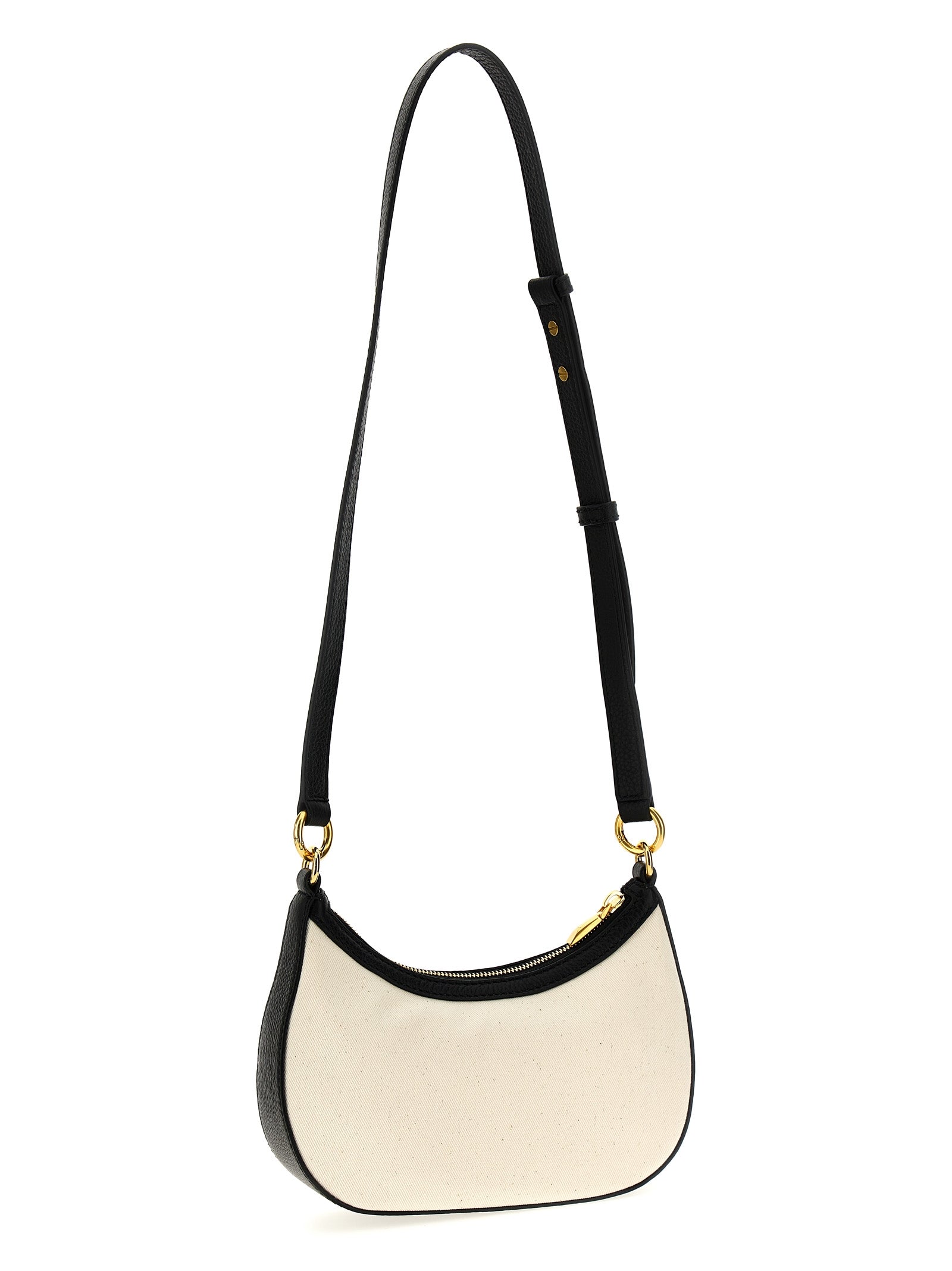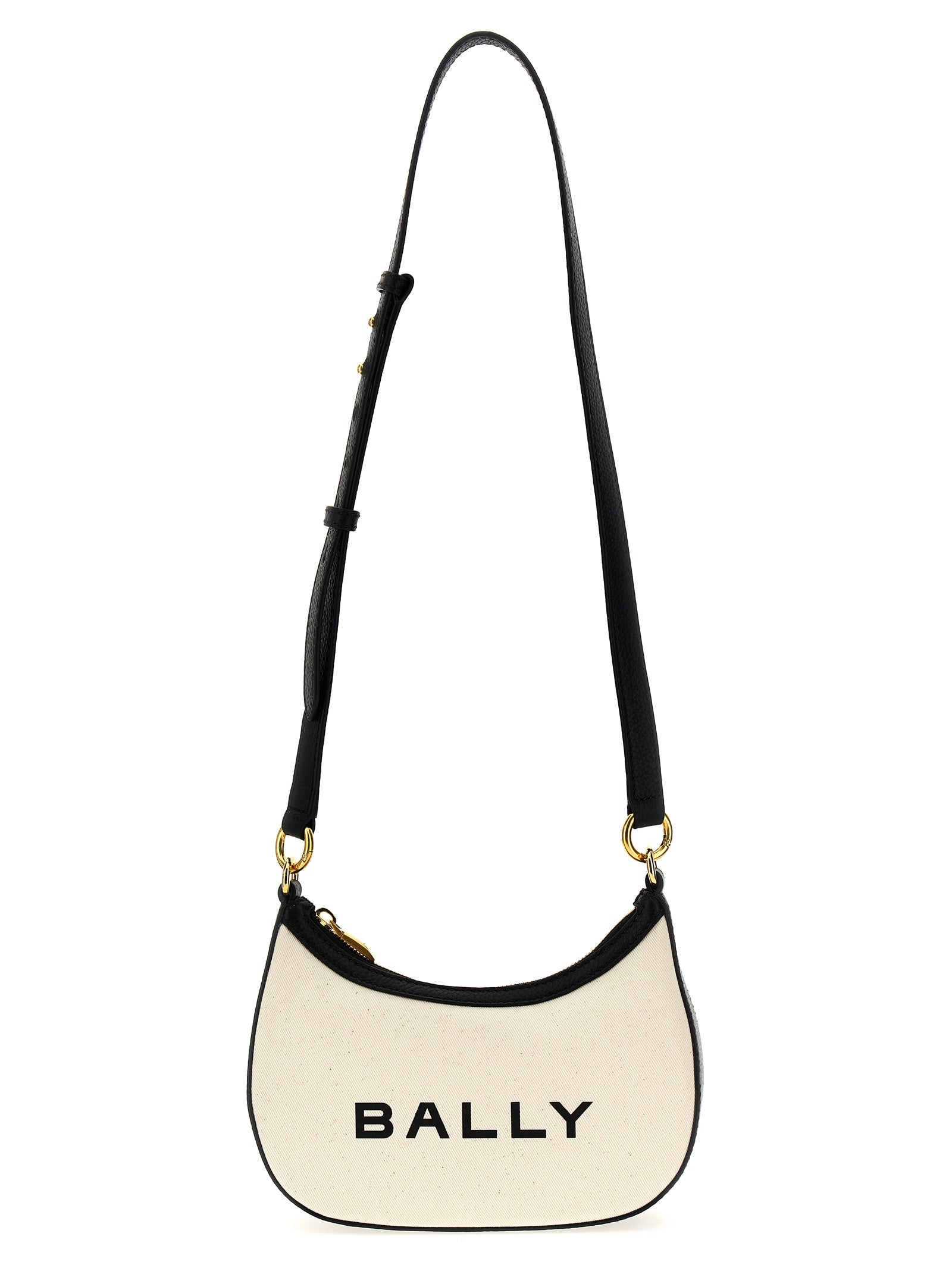 'Bar Ellipse' canvas and leather crossbody bag, logo print, zip closure, adjustable and removable leather shoulder strap.