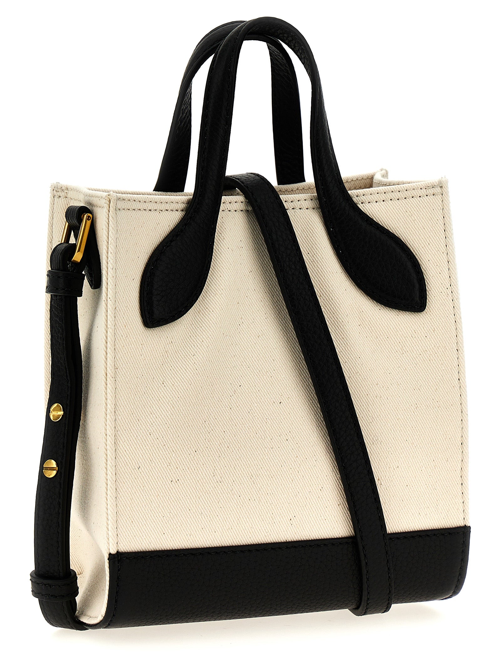 'Bar Mini Keep On' shopping bag in canvas and leather, logo print, double handle, adjustable and removable shoulder strap.